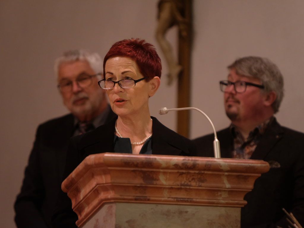 Ortsvorsteherin Sybille Schleweck ging im Anschluss an diese Einführung in ihrer Festrede auf die vielen Generationen von Menschen ein, die hier gelebt, aber auch gelitten hatten, die als kleiner Teil eines großen Ganzen und aus dem Dorf das gemacht hatten, das es heute ist. So gab es seit dem 13. Jahrhundert Streitigkeiten, die erst 1488 vom Bischof von Konstanz beigelegt wurden. Auch wurde Ziegelbach vom 30-jährigen Krieg (1618-48) wie viele andere Ortschaften in der Region, schwer gebeutelt. Aber die Kirche im Ort sei immer ein Ort des Gebetes aber auch der Hoffnung gewesen in dieser landwirtschaftlich geprägten Gegend. Die Menschen hätten mit Fleiß das begründet, was Ziegelbach heute ist. Mit der Eisenbahn kamen viele Menschen, aber sie gab den Menschen auch die Möglichkeit, andere Städte kennenzulernen. Mit der Elektrizität gab es einen Aufbruch in eine neue Zeit. Aber nach der Katastrophe des Zweiten Weltkriegs blieb der Ort bestehen; das Rathaus und Schule wurden ab 1948 wiederaufgebaut, der Kindergarten gebaut, 1975 dann die Eingemeindung und 1980 wurde der Dorfstadel eingeweiht. Ein neues Feuerwehrhaus wurde ebenfalls gebaut. In Ziegelbach werde die in der Kirche dargestellte „barocke Frömmigkeit“ gelebt. „Das Dorf lebt nicht von Häusern, sondern den alltäglichen Begegnungen der Menschen miteinander.“