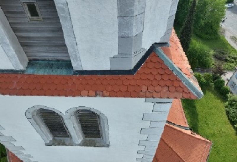 Am Kirchturm von St. Verena haben sich Dachplatten gelöst
