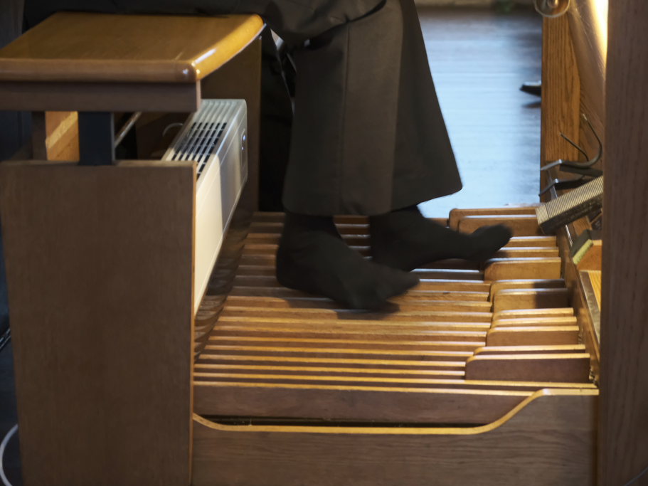 Mit Johann Sebastian Bach (1685-1750) „Toccata und Fuge d-Moll“ („Dorische“) setzte Cosmas Mohr das Konzert fort. Robert Häusle gab Erläuterungen zur “Dorischen”. Johann Sebastian Bach hatte als Komponist viel zu tun: für jeden Sonntagsgottesdienst musste er eine Kantate komponieren. „Erschallet ihr Lieder, erklinget ihr Saiten“ schrieb er für den Pfingstsonntag 1714 in Weimar. Robert Häusle und Felix und Moritz Ulmschneider spielten diese in der Bearbeitung von Jehan Alain aus dem Jahre 1938.