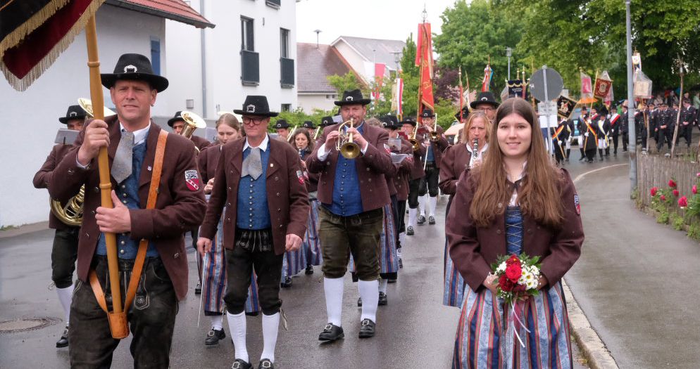 Arnach – Auch der Sonntag des Jubiläumswochenendes begann mit einem Festzug. An diesem regnerischen Sonntagmorgen (25.5.) standen beim Kirchgang neben der 175-jährigen Jubel-Kapelle die Blutreiter mit ihrem 100-jährigen Jubiläum im Mittelpunkt. Im Anschluss an den Festgottesdienst ging es wieder zurück zur Festhalle, wo die beiden Jubiläen mit Frühschoppen und Nachmittagskaffee ausklangen.