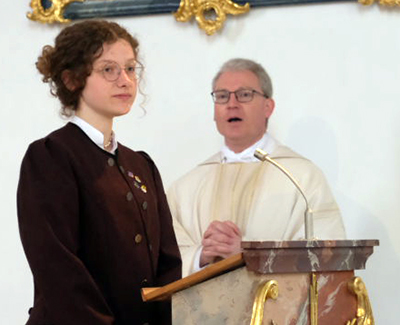 Am Schluss des Gottesdienstes dankte MVA-Vorstandssprecherin Stefanie Jöchle (Bild) allen, die dem Musikverein treu verbunden sind, die ihn mit Leben erfüllen und ihm ihre Kraft, ihren ehrenamtlichen Einsatz spenden. Dabei vergaß sie nicht, den Altvorderen zu danken, auf deren Leistung man aufbaue.
