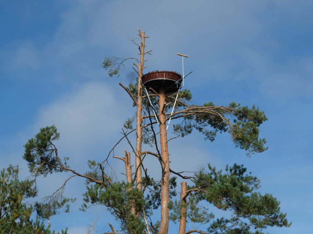Nun also hofft Roth auf diesem Weg, diese stolzen Tiere ins Ried „locken“ zu können. Dank des Kultur- und Heimatpflegevereines Wurzen konnten die beiden Horste angeschafft und mit Hilfe zweier Baumpfleger auf den Bäumen installiert werden. Diese kappten die Spitzen der Bäume, um den Horst direkt darauf zu setzen. Diese bestehen aus  Drahtgitter, auf die ein Weidenkorb gestellt wurde, gefüllt mit Ästen, Rindenmulch und Torfboden, damit das potentielle Brutpaar keine Zeit für den Nestbau verwenden muss, sondern sich gleich ums Brüten kümmern kann.