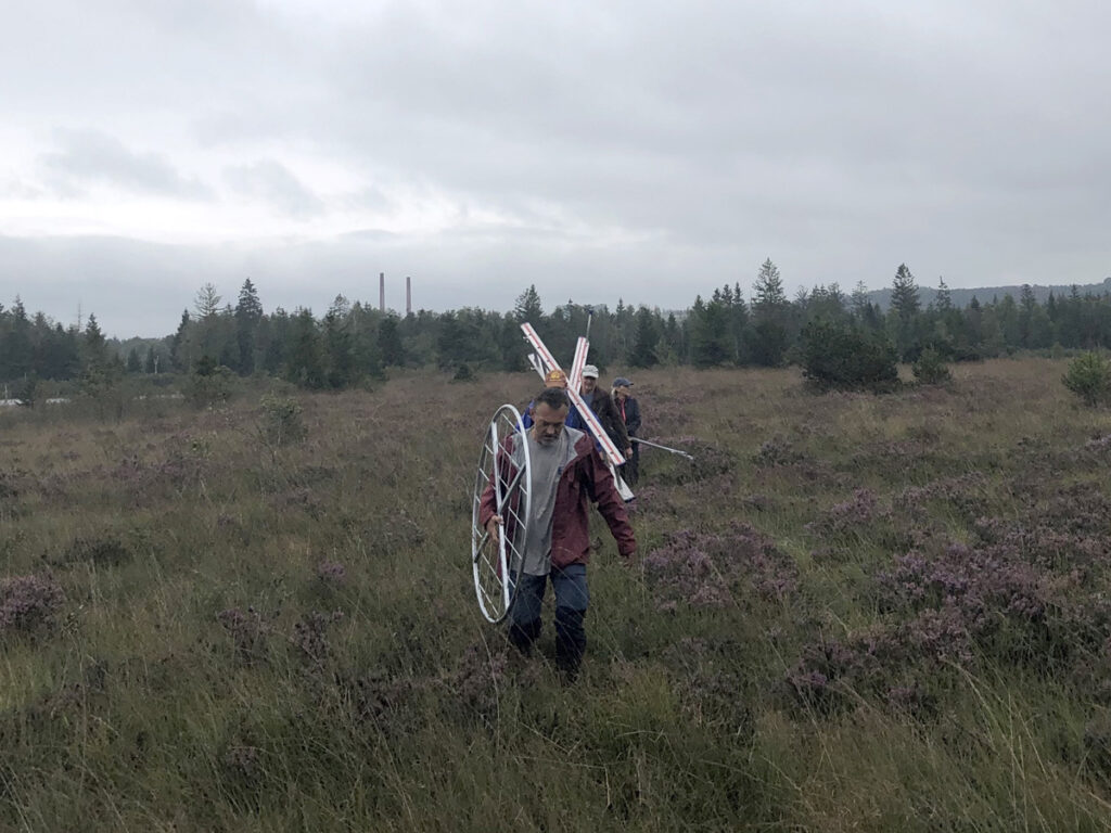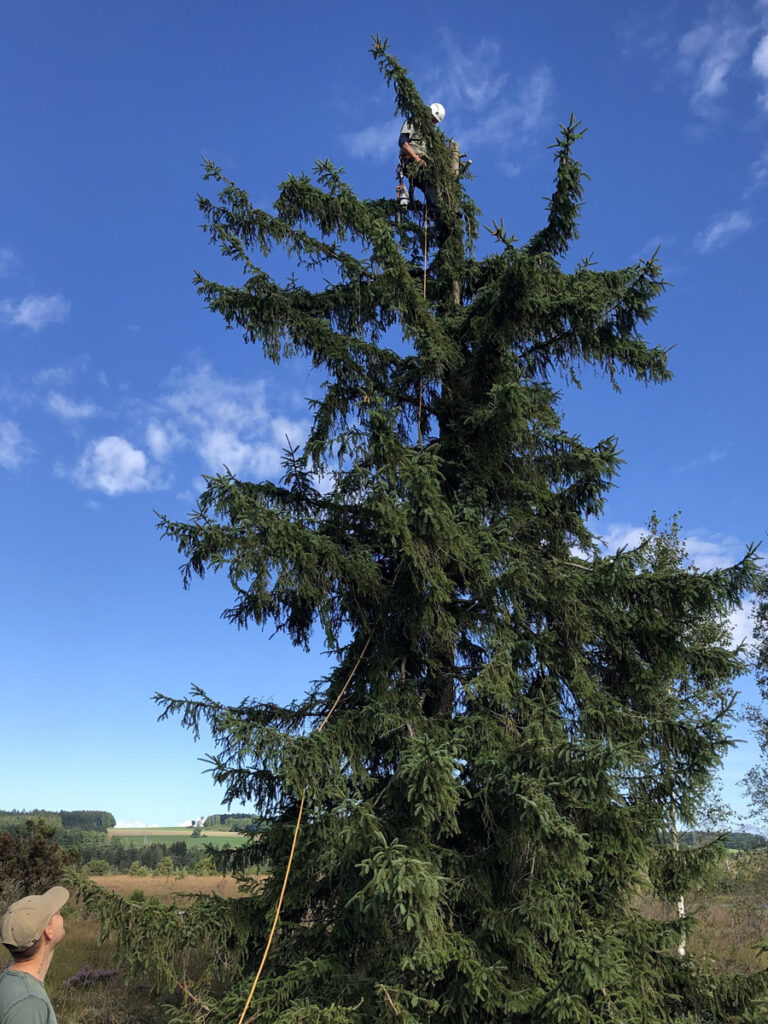 In der letzten Augustwoche war es dann soweit, nachdem der Termin für den Bau im Frühjahr mit Rücksicht auf das unweit eines der geplanten Standorte brütende Kranichpaar abgeblasen wurde. Mit sechs Helfern des Heimatvereines Wurzen, darunter auch Vorstand Markus Vincon sowie zwei Steigern, wurden die beiden Standorte vorbereitet, die Bäume zurechtgeschnitten und die Horste darauf installiert.