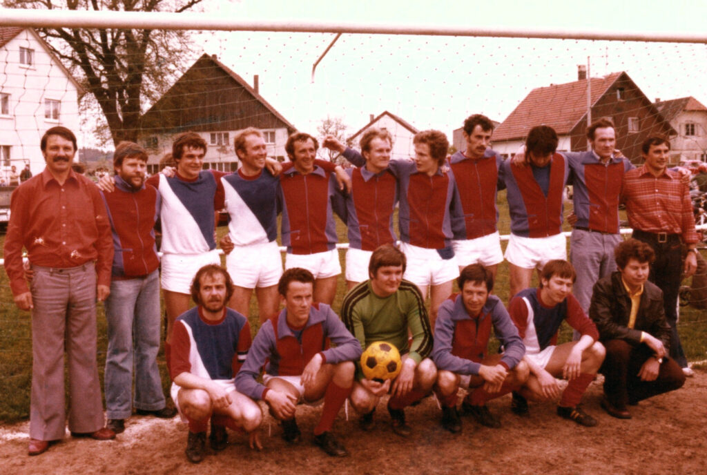 Die Meistermannschaft des SV Arnach von 1978 (die Namen sind im unten verlinkten Artikel „Derby in Arnach: Der SVA misst sich mit der TSG” vermerkt). Josef Lott ist vorne links zu sehen (mit Spielführerbinde).