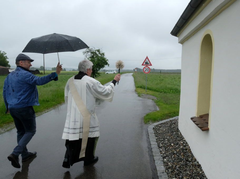 Zwings – Nach einer langen Renovierungszeit, bei der viele Zwingser und Böckiser kräftig mit Hand anlegten, konnte der leitende Pfarrer der Seelsorgeeinheit Oberes Achtal (Bergatreute-Wolfegg-Molpertshaus), Klaus Stegmaier, gemeinsam mit Diakon Franz Fluhr im Rahmen einer Maiandacht die Josefskapelle in Zwings wiedereinweihen.