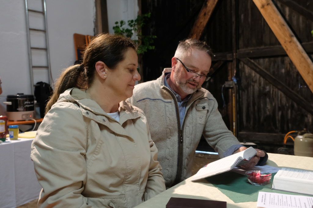 Nach dem Schlusssegen verwandelten fleißige Hände die Scheune in kürzester Zeit zu einer gemütlichen Hockete, wo bei Vesper und selbstgebackenem Kuchen die letzten Stunden des Wonnemonats Mai und die Kapelle noch gebührend gefeiert wurde.