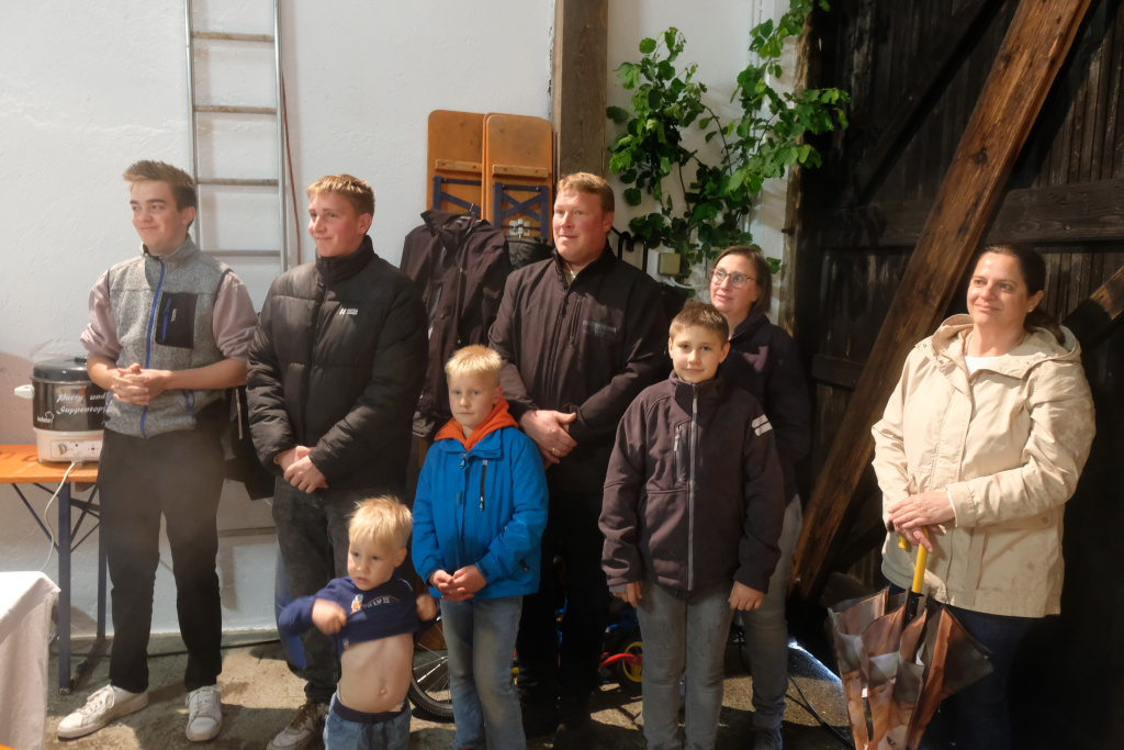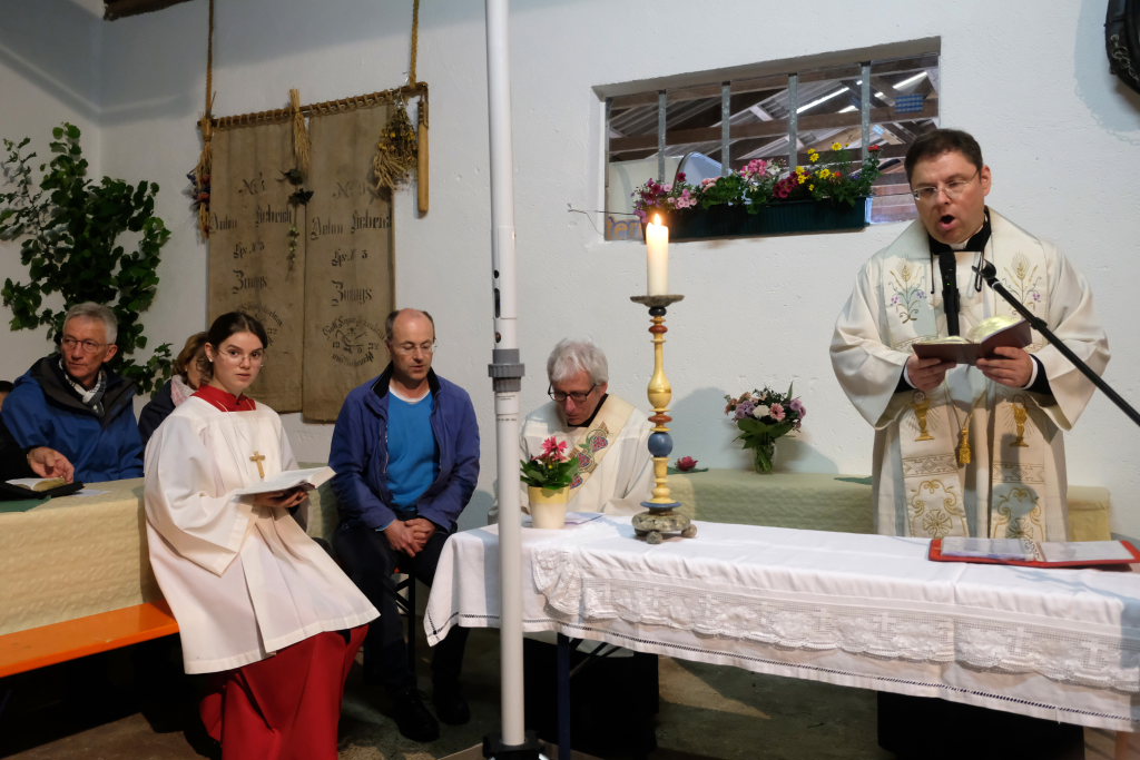 Aufgrund des langanhaltenden Regenwetters – die Haidgauer Ortsvorsteherin Ernestina Frick ließ sich für die Feier entschuldigen, weil sie in Sachen Hochwasserschutz unterwegs war – fand die Maiandacht in der Scheune von Familie Liebrich statt, der die Kapelle eine Herzensangelegenheit ist und die sich seit vielen Generationen darum kümmert.