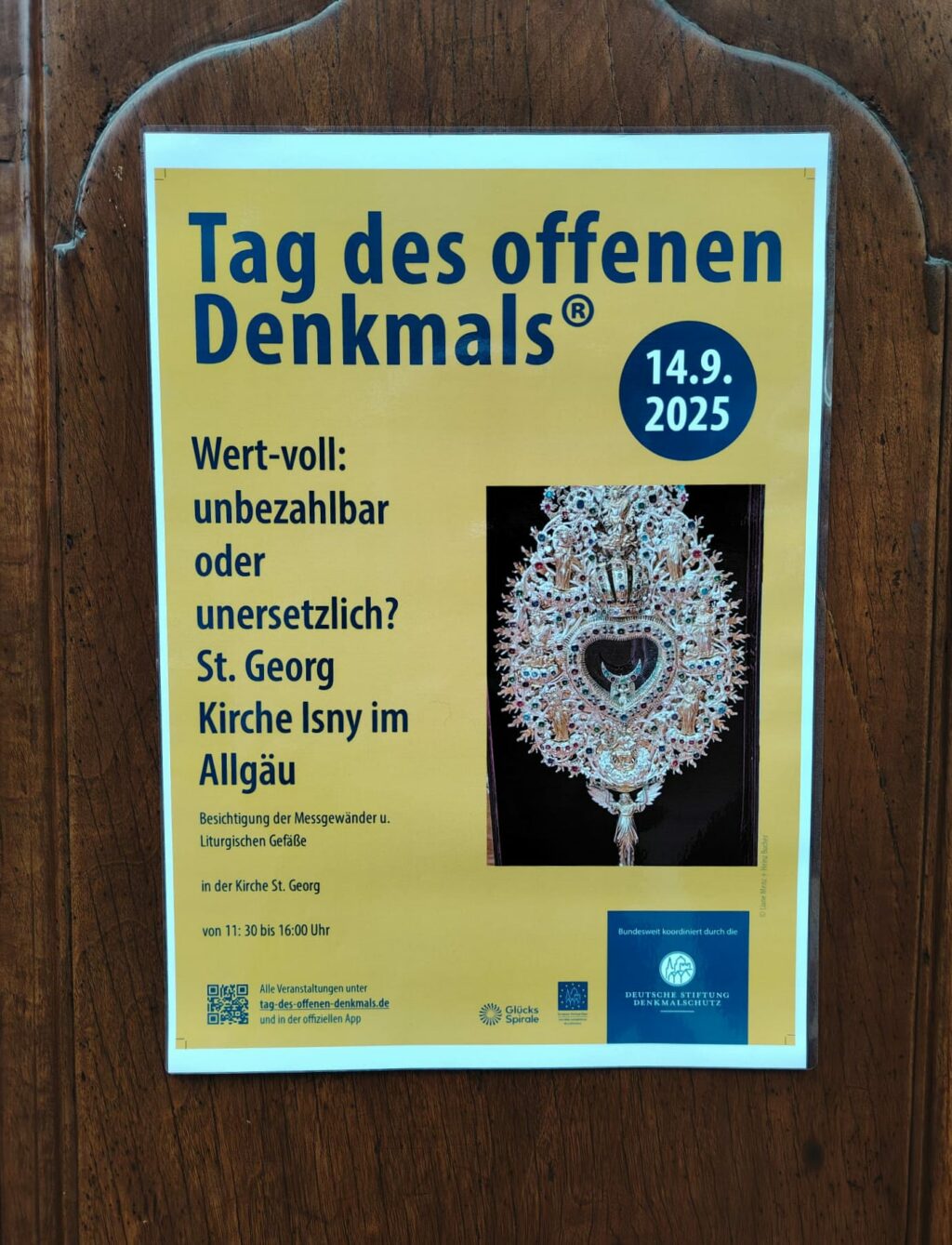 Isny – Der „Tag des offenen Denkmals“ – dieses Jahr mit rund 6500 Veranstaltungen – ist wohl das größte Kulturevent Deutschlands. Mit dabei war auch die AG Heimatpflege, die sich diesmal etwas Besonderes ausdachte: In Zusammenarbeit mit der Katholischen Kirchengemeinde präsentierte sie barocke Kirchenschätze.