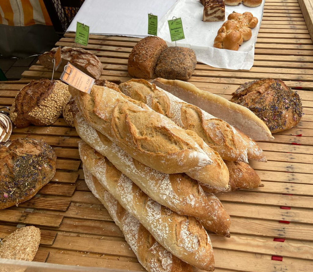 Selbstverständlich lassen sich die Leckereien vorbestellen und am Marktstand abholen: darunter auch frisches Bio-Rind und Hähnchen, saisonale Produkte (Weihnachtsgans) oder Geschenkkörbe mit Spezialitäten vom Hof.