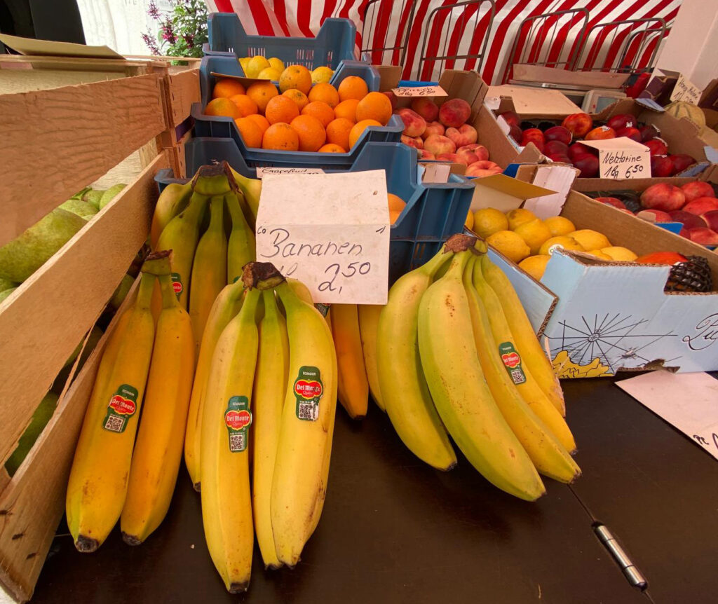 Seine Ware kauft Manfred Dürrenberger auf dem Großmarkt in München, vieles bei einer Großgärtnerei in Neufahrn. Je nach Saison stammen einige Produkte auch von landwirtschaftlichen Betrieben der Region. Südfrüchte, Kartoffeln und vieles mehr – am Stand von Familie Dürrenberger finden Marktbesucher ein breites Sortiment an Obst und Gemüse.