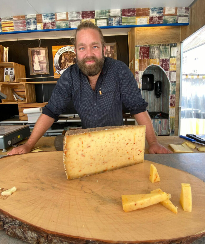 Als David Tschugg aus Wiggensbach im Allgäu mit 16 Jahren seine Lehre als Käser begann, ahnte er nicht, dass ihn dieses Lebensmittel so in den Bann ziehen würde. Heute ist er leidenschaftlicher Käsemeister und Käsesommelier, der sich der Veredelung von Käse widmet – aus Verbundenheit zum traditionellen Handwerk der Käsekunst. Den frischen Käse von kleinen, nachhaltigen Käsereien der Region bearbeitet er mit verschiedensten Zutaten wie Kräutern, Gewürzen und Ölen. Dann braucht es Zeit, Pflege und Geduld bis zum richtigen Reifezeitpunkt – die drei sind die Voraussetzungen für die vollen und einzigartigen Aromen seiner Produkte. In einem 300 Jahre alten Gewölbekeller in Leutkirch werden die Käselaibe bei optimaler Raumtemperatur und Luftfeuchtigkeit gelagert und affiniert. Auf dem Isnyer Wochenmarkt hat er jeden Donnerstag eine große Auswahl seiner hochwertigen Käse dabei und begeistert jeden Standbesucher mit seinen eindrücklichen Geschichten. So hört man ihn zum Beispiel sagen: „Käsen ist wie Kuchen backen, nur vergeht manchmal ein Jahr, um festzustellen, dass er nix geworden ist.” Neben seinem Stand in Isny verkauft D´r Senn auch über seinen Onlineshop und gern nimmt er Vorbestellungen entgegen.