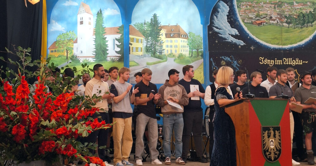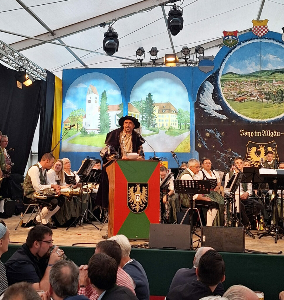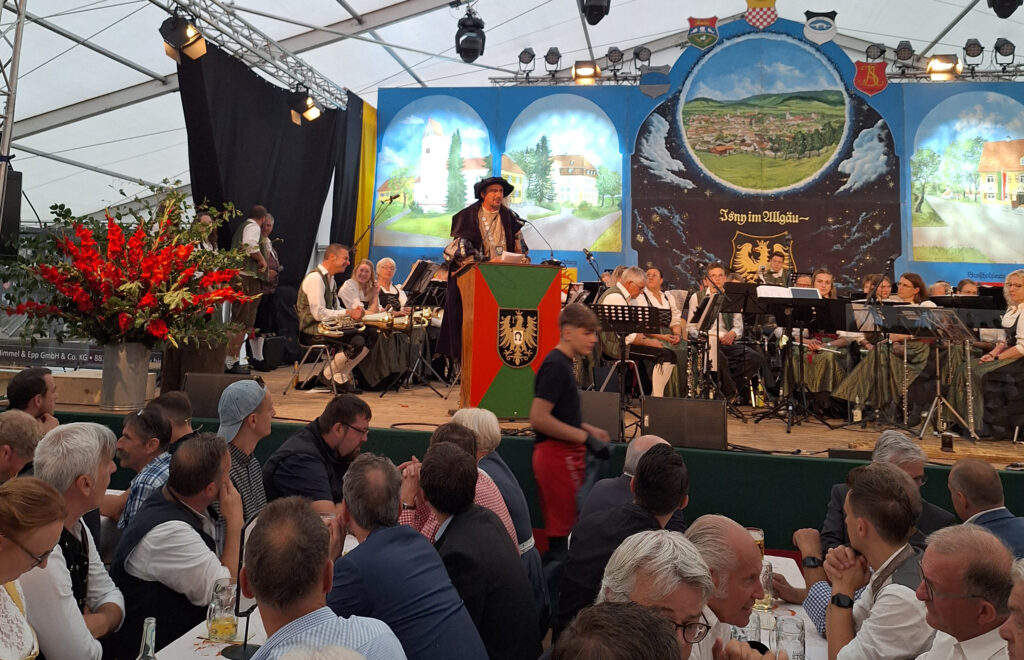 Isny (rei) – Die Zunftfeier am Festmontag ist ein Herzstück des Isnyer Kinder- und Heimatfestes. Das Festzelt am Rain war auch heuer mit 1200 Gästen bis auf den letzten Platz belegt. Die Handwerkervorführung machte die Firma Himmel und Epp; die Metallbauspezialisten zeigten alte Schmiedekunst. Gastredner war der bekannte Journalist Jan Fleischhauer, der sich vor allem mit der Bundespolitik befasste. Im Mittelpunkt der Zunftfeier stand die Ehrung von vier frischgebackenen Meistern und von zwei Handwerkern, die vor 50 Jahren ihren Meisterbrief in Empfang nahmen. Zudem wurden mehr als 50 Nachwuchskräfte namentlich genannt, die soeben ihre Gesellen-Prüfung bestanden oder einen vergleichbaren Abschluss gemacht haben.