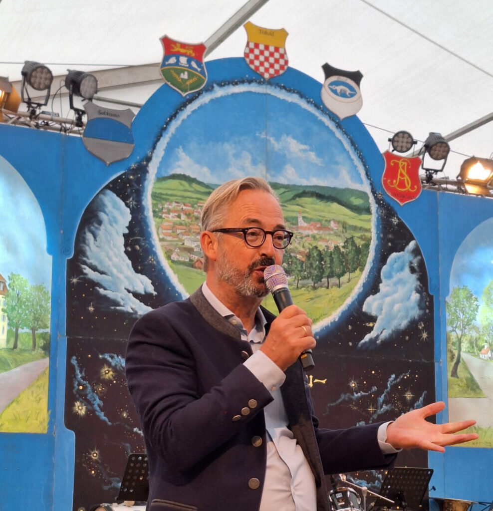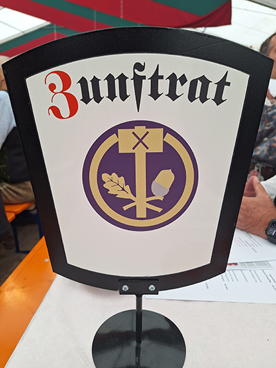 Zunftmeister Konstantin Bodenmüller, der der Bildschirmzeitung die Ehrungsliste hat zukommen lassen, nahm in seiner Rede kein Blatt vor den Mund: So kritisierte er die hohe Verschuldung der Stadt. Gleichzeitig werde eine wertvolle Fläche in der Altstadt (hinter dem Hallgebäude) nicht bebaut, sondern liege als „Gehölzinsel“ brach. Solch „tote Flächen“ entstünden, wenn, wie Bodenmüller wörtlich ausführte, „Gremien zu Teilen mit Menschen besetzt sind, die ideologiegetrieben sind. Das passiert, wenn Entscheidungsträger nie in der freien Wirtschaft tätig waren. Das passiert, wenn SPD und Grüne nach bezahlbarem Wohnraum schreien, aber eine vernünftige Bebauung verhindern.“