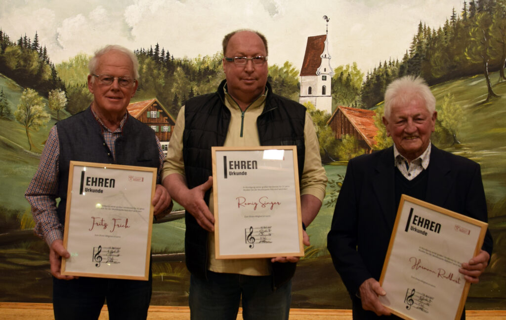 Fritz Frick, Remig Singer und Hermann Rudhart (v. l.) wurden zu Ehrenmitgliedern ernannt. Foto: MVR
