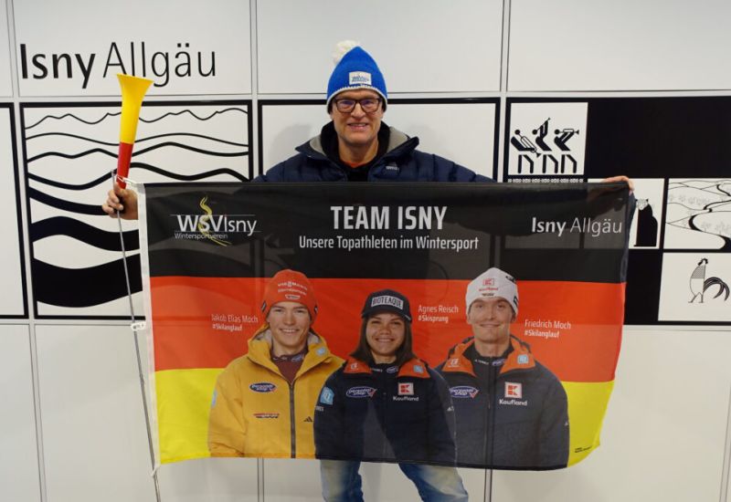 Isny – Bald heißt es Daumen drücken: Am 6. Februar werden die olympischen Winterspiele in Mailand und Cortina d´Ampezzo eröffnet. Mit den Aktiven Agnes Reisch, Friedrich Moch und Jakob Elias Moch sowie Skisprungtrainer Maximilian Mechler haben gleich vier Teilnehmer ihre sportlichen Wurzeln in Isny. Wer die Isnyer Athleten unterstützen möchte, kann mit der „Team Isny“-Fahne des Wintersportvereins Isny Flagge zeigen – erhältlich ist sie ab sofort an zahlreichen Stellen in Isny.