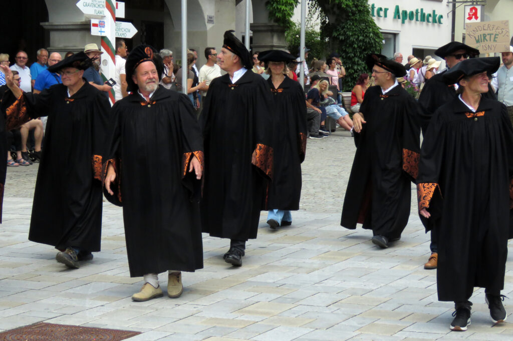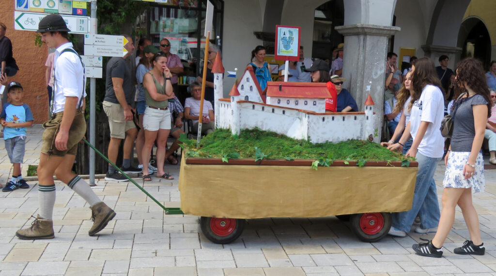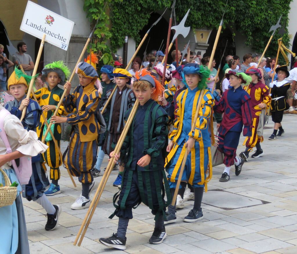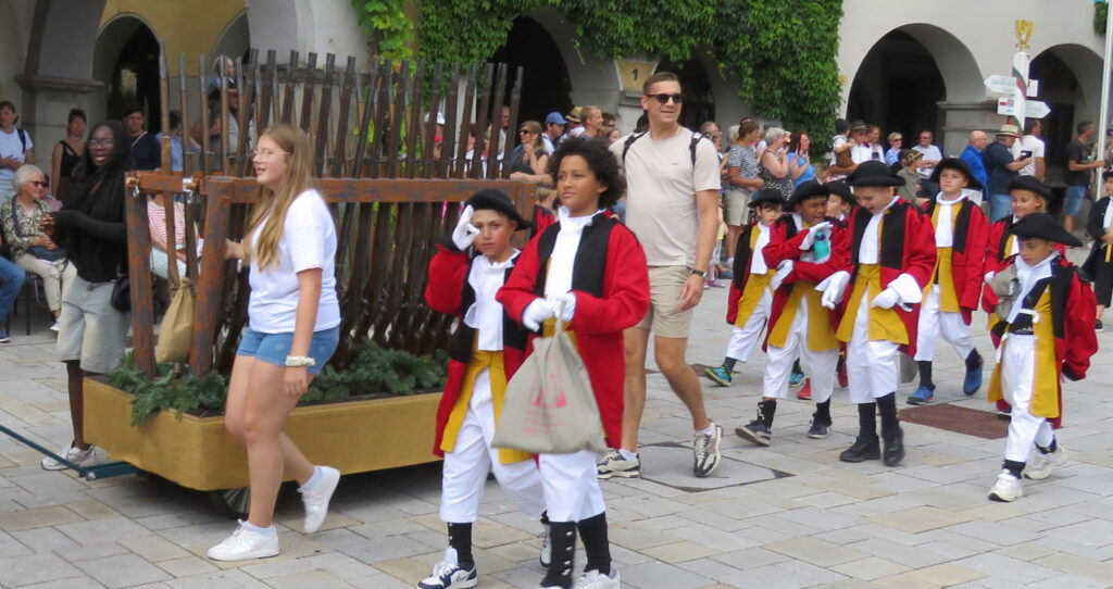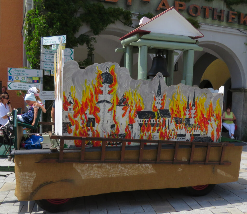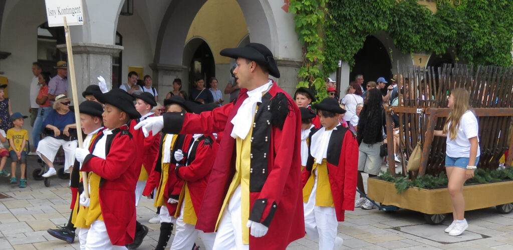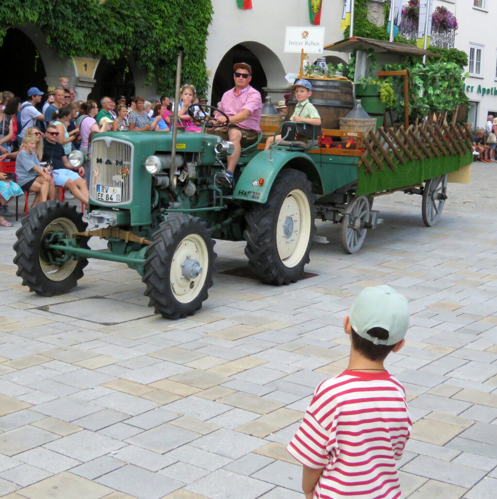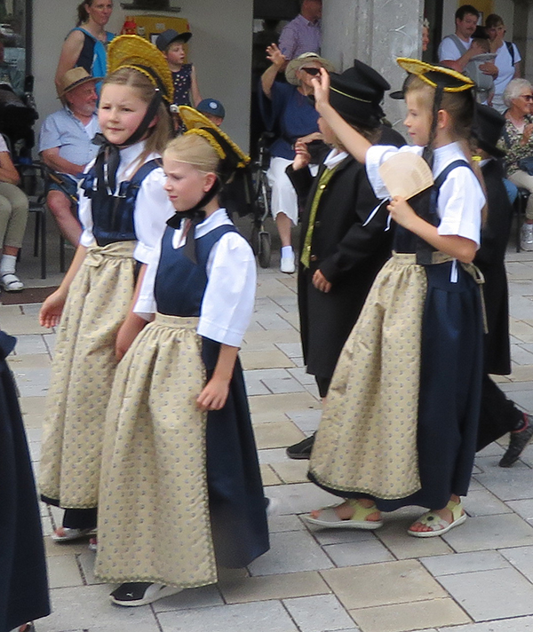 Seit 1620 gibt es das Isnyer Kinder- und Heimatfest – sicherlich unterbrochen in Kriegs- und Notzeiten. Eine stolze Tradition, einer alten Reichsstadt würdig. Handel und Wandel, Leben und – ja, auch Sterben – schienen in dem prächtigen farbenfrohen Umzug auf. So war unter der Überschrift „Heimsuchungen“ ein historischer Leichenwagen zu sehen, der an Pestzeiten gemahnte. Natürlich überwogen die lebensfrohen, die farbenfrohen Motive bei weitem, strahlten ihre Darsteller um die Wette. Und das bei Kaiserwetter!
