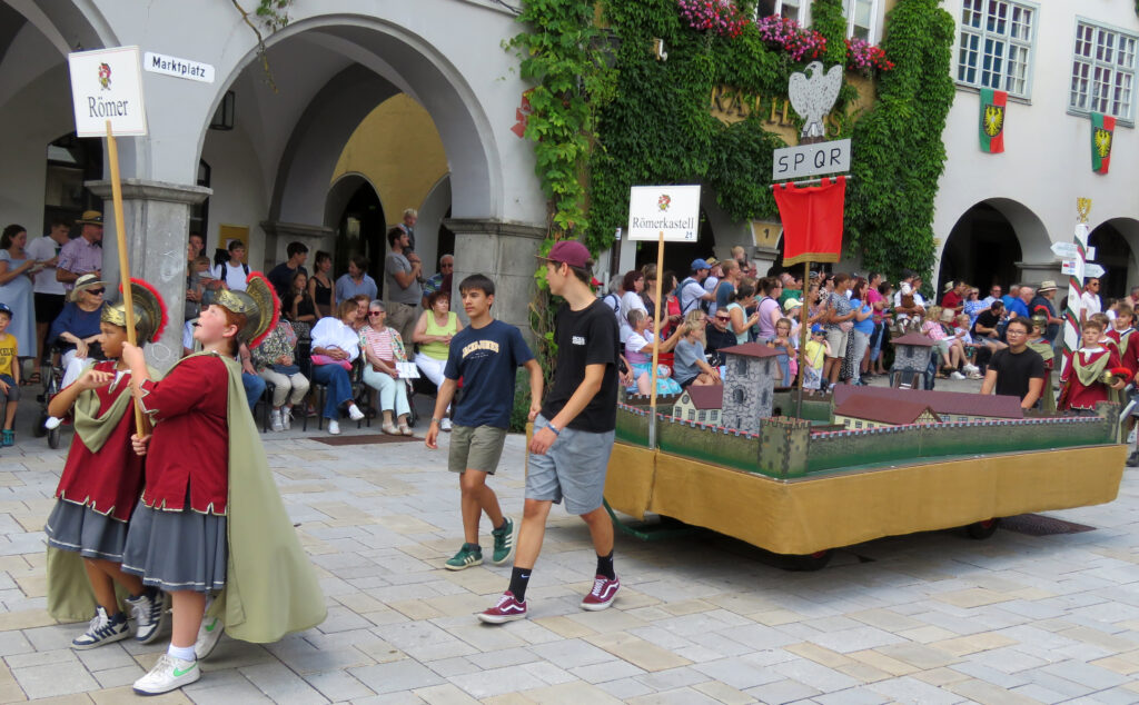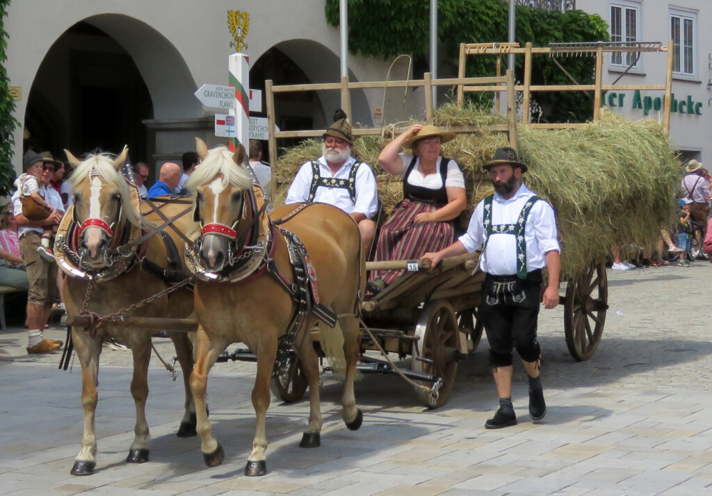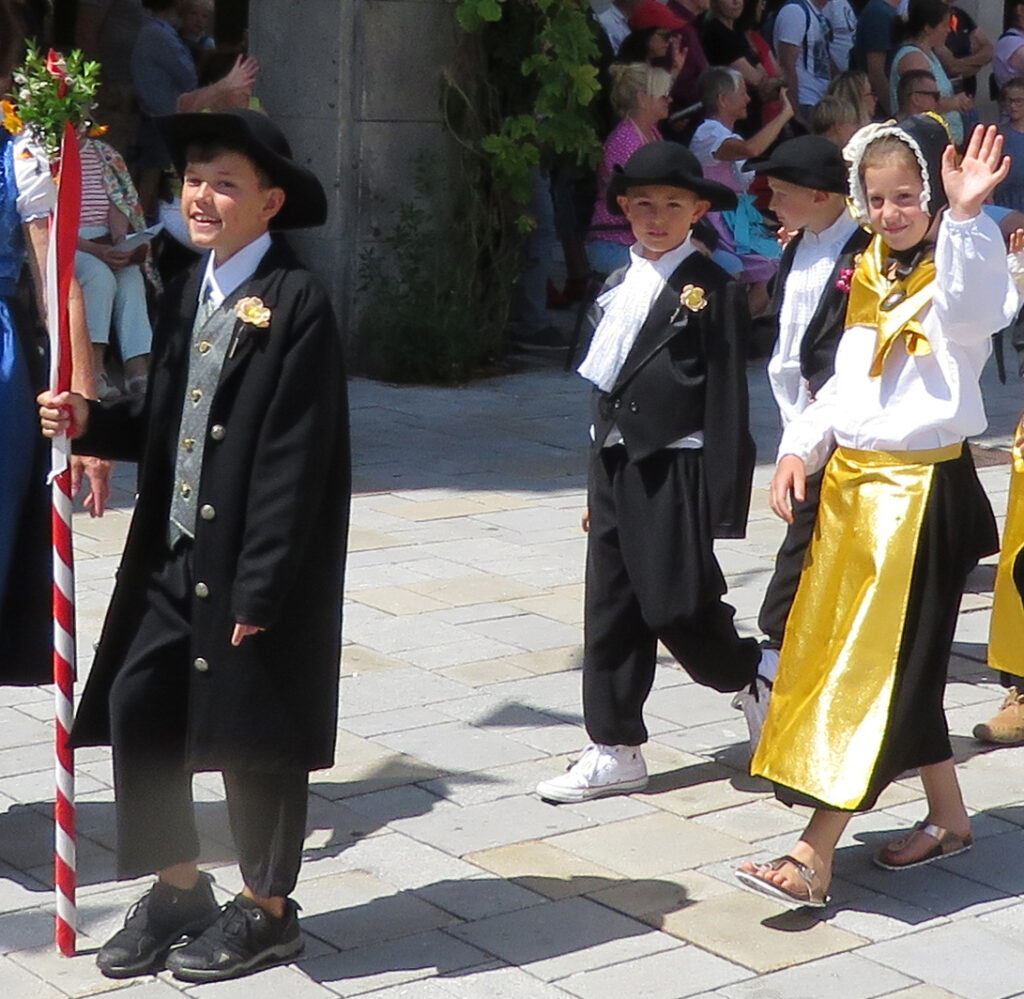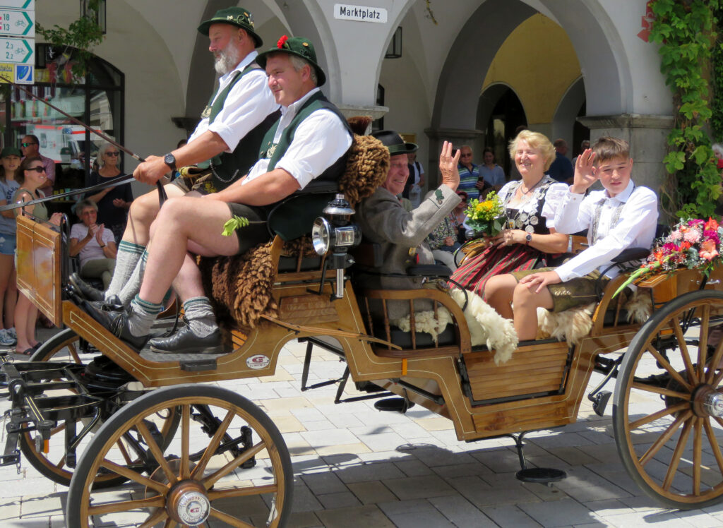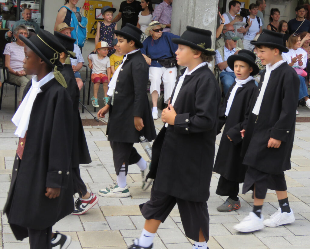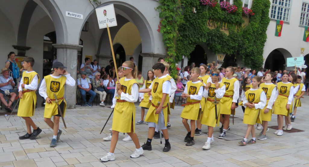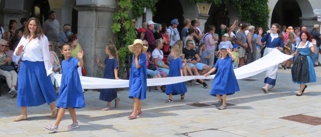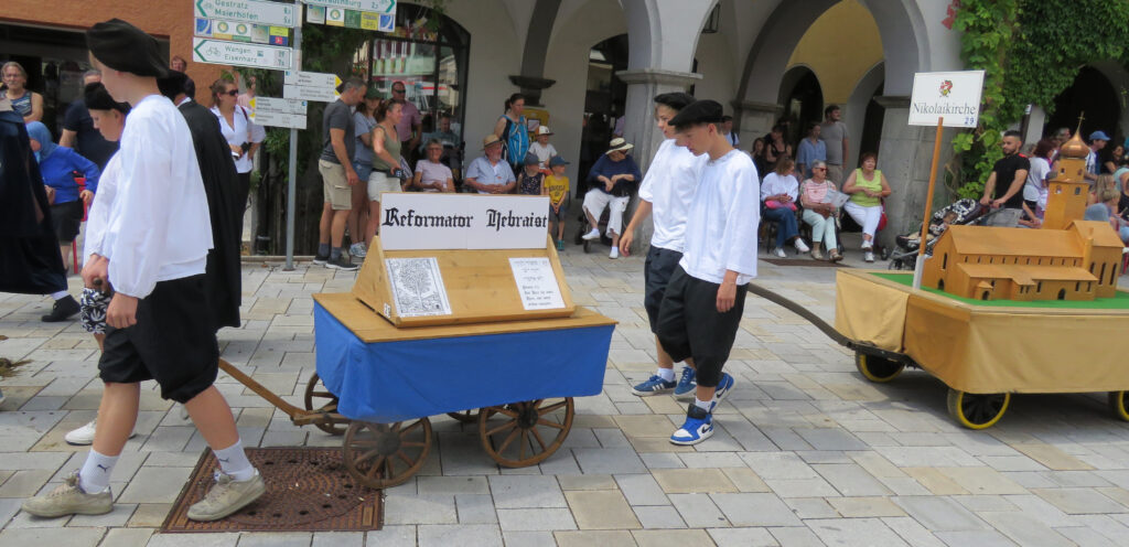 Seit 1620 gibt es das Isnyer Kinder- und Heimatfest – sicherlich unterbrochen in Kriegs- und Notzeiten. Eine stolze Tradition, einer alten Reichsstadt würdig. Handel und Wandel, Leben und – ja, auch Sterben – schienen in dem prächtigen farbenfrohen Umzug auf. So war unter der Überschrift „Heimsuchungen“ ein historischer Leichenwagen zu sehen, der an Pestzeiten gemahnte. Natürlich überwogen die lebensfrohen, die farbenfrohen Motive bei weitem, strahlten ihre Darsteller um die Wette. Und das bei Kaiserwetter!