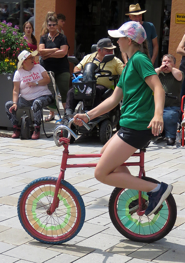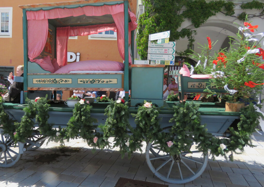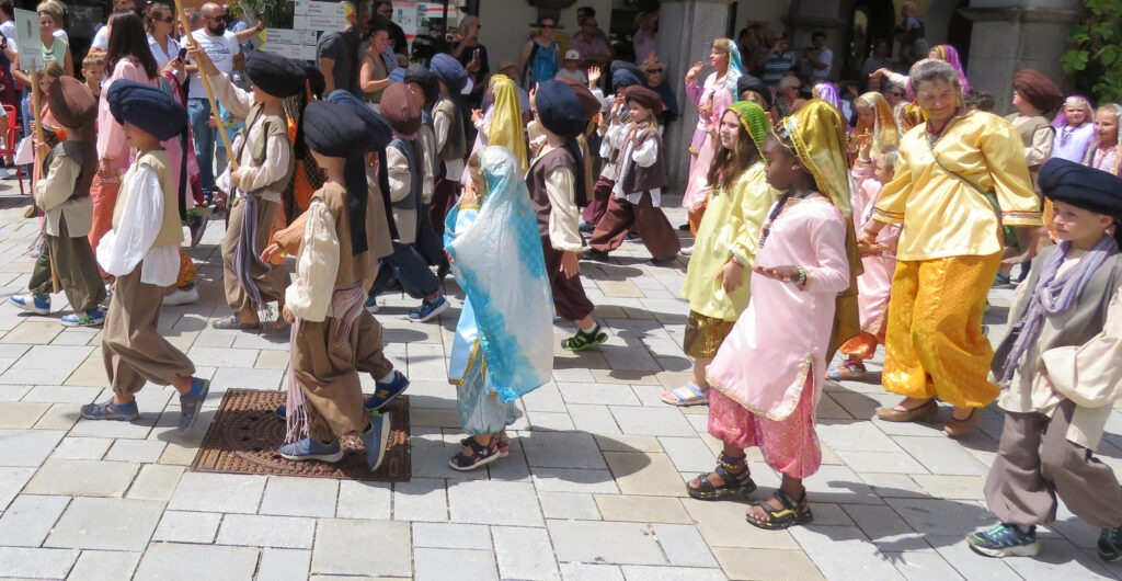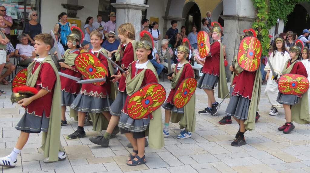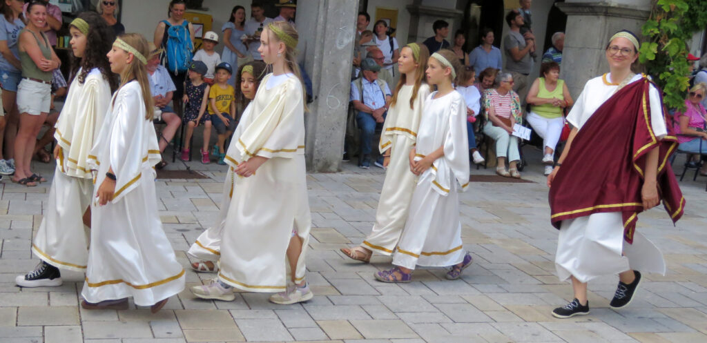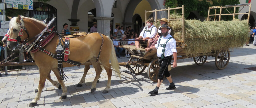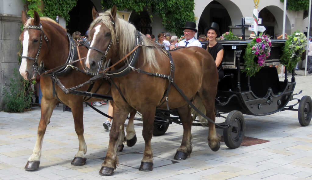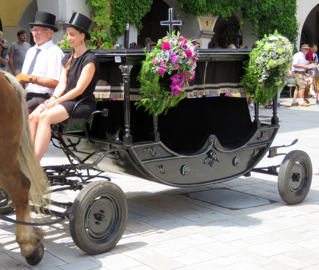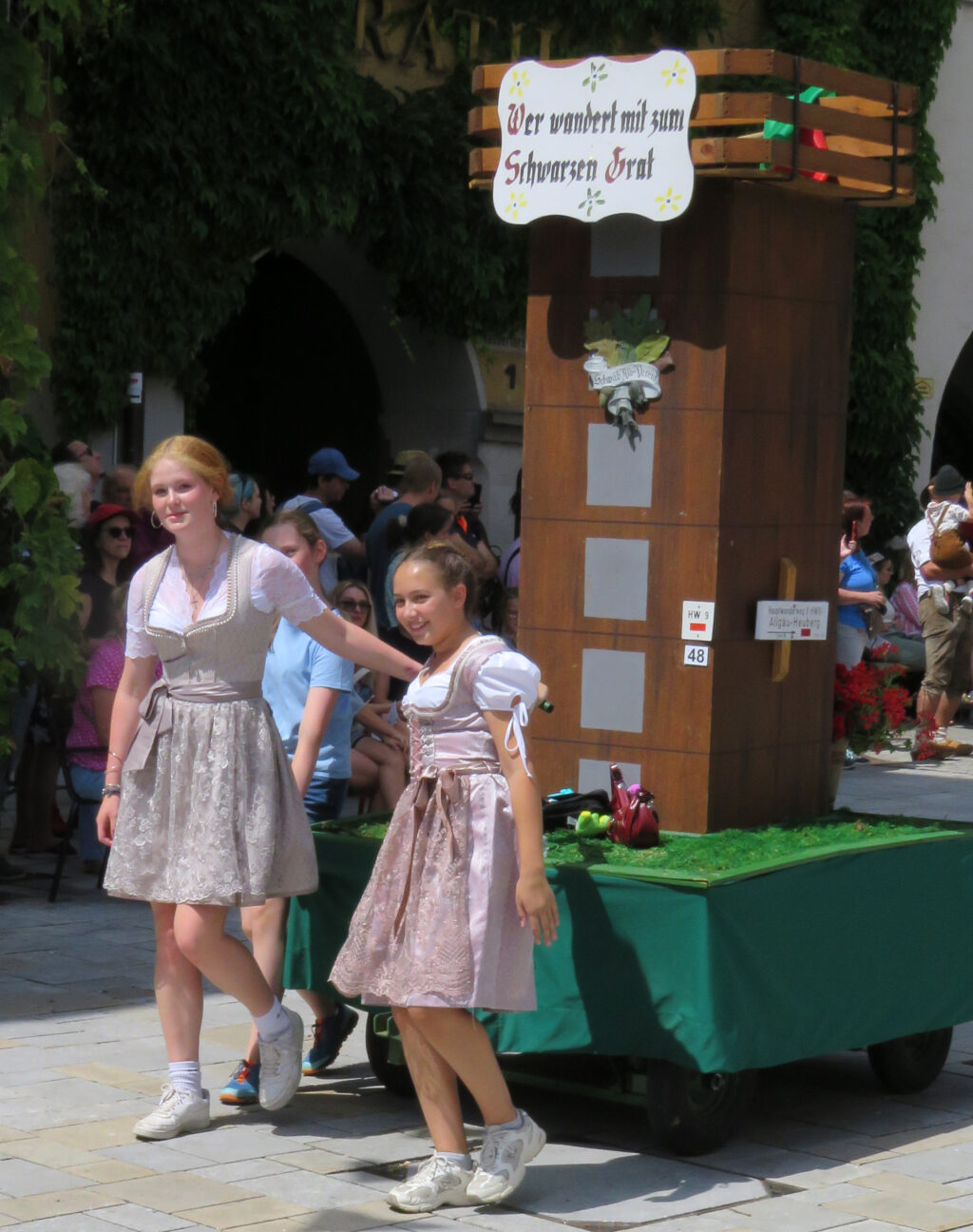 Seit 1620 gibt es das Isnyer Kinder- und Heimatfest – sicherlich unterbrochen in Kriegs- und Notzeiten. Eine stolze Tradition, einer alten Reichsstadt würdig. Handel und Wandel, Leben und – ja, auch Sterben – schienen in dem prächtigen farbenfrohen Umzug auf. So war unter der Überschrift „Heimsuchungen“ ein historischer Leichenwagen zu sehen, der an Pestzeiten gemahnte. Natürlich überwogen die lebensfrohen, die farbenfrohen Motive bei weitem, strahlten ihre Darsteller um die Wette. Und das bei Kaiserwetter!