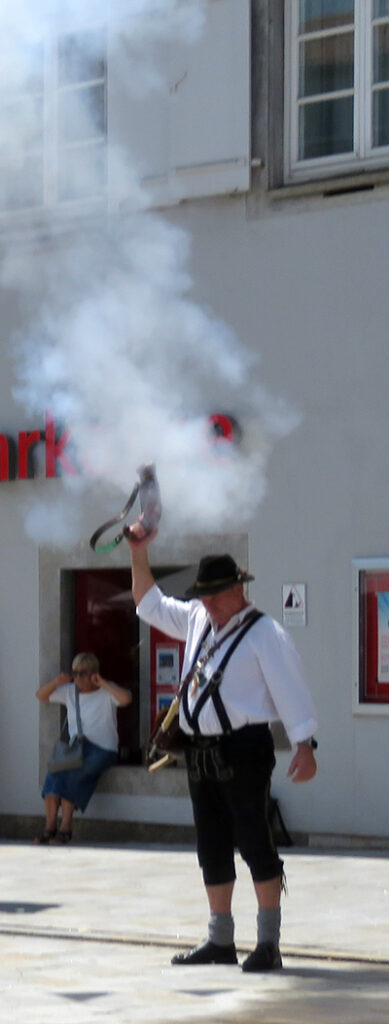 Die Böllerschützen bei der lautstarken Eröffnung des Historischen Festzuges.