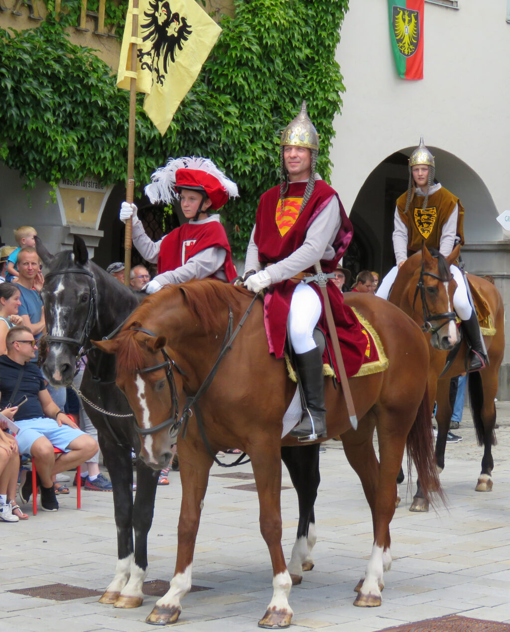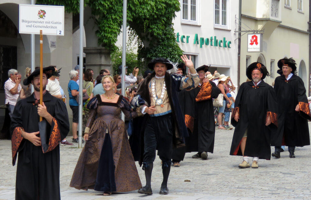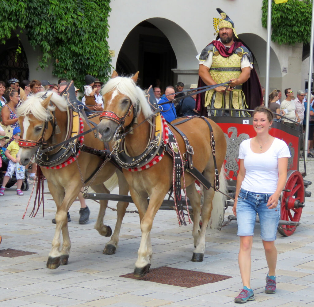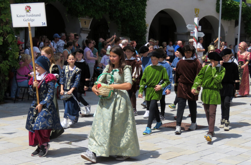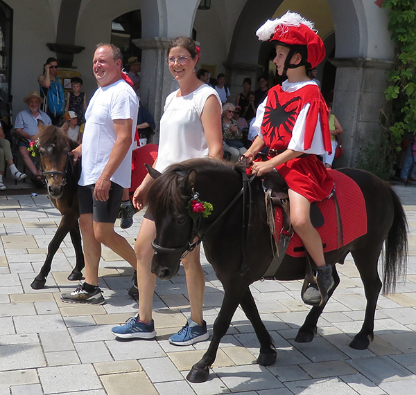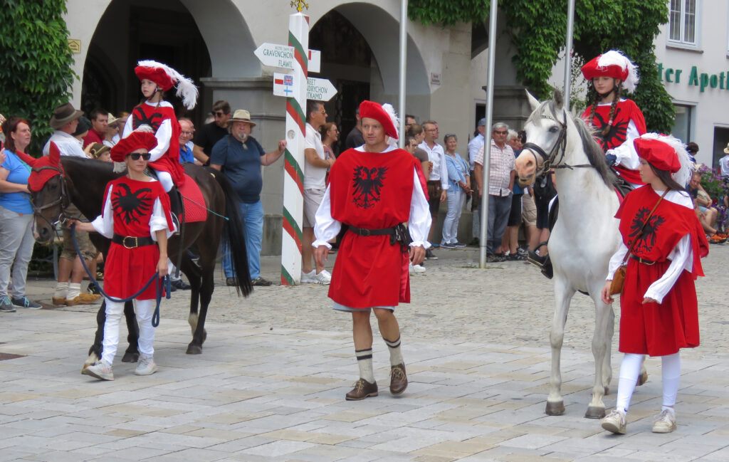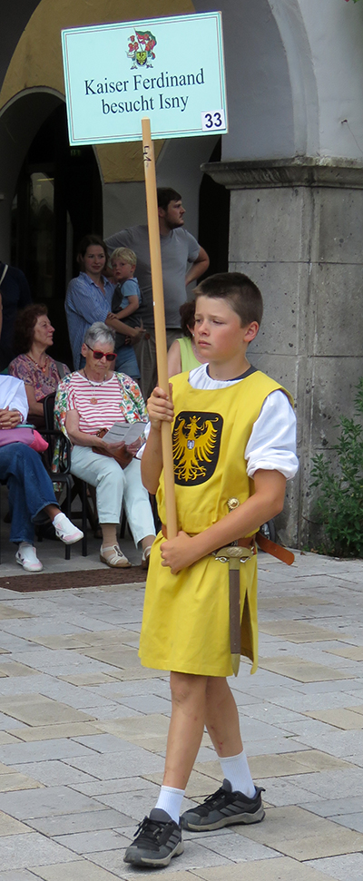 Und tatsächlich: Es zog mit Kaiser Ferdinand eine Majestät aus längst vergangenen Tagen durchs Wassertor. Reiter verschiedener Vereine und Schüler des Gymnasiums (6a) und der Verbundschule (6a und 6d) stellten den Einzug des Kaisers in Isny anno 1563 nach. Diese Gruppe und die pittoreske Gruppe um Marie Antoinette (ebenfalls vom Gymnasium gestellt; Kutscher: Tobias und Bruno Zerlaut) seien hier stellvertretend für alle Mitmacher genannt.