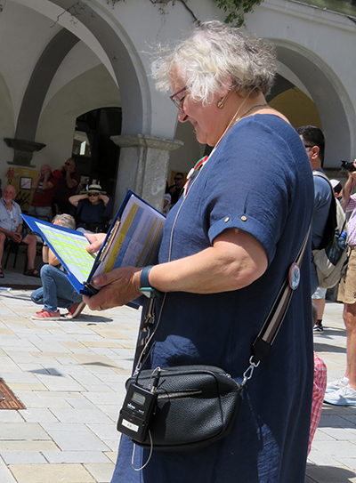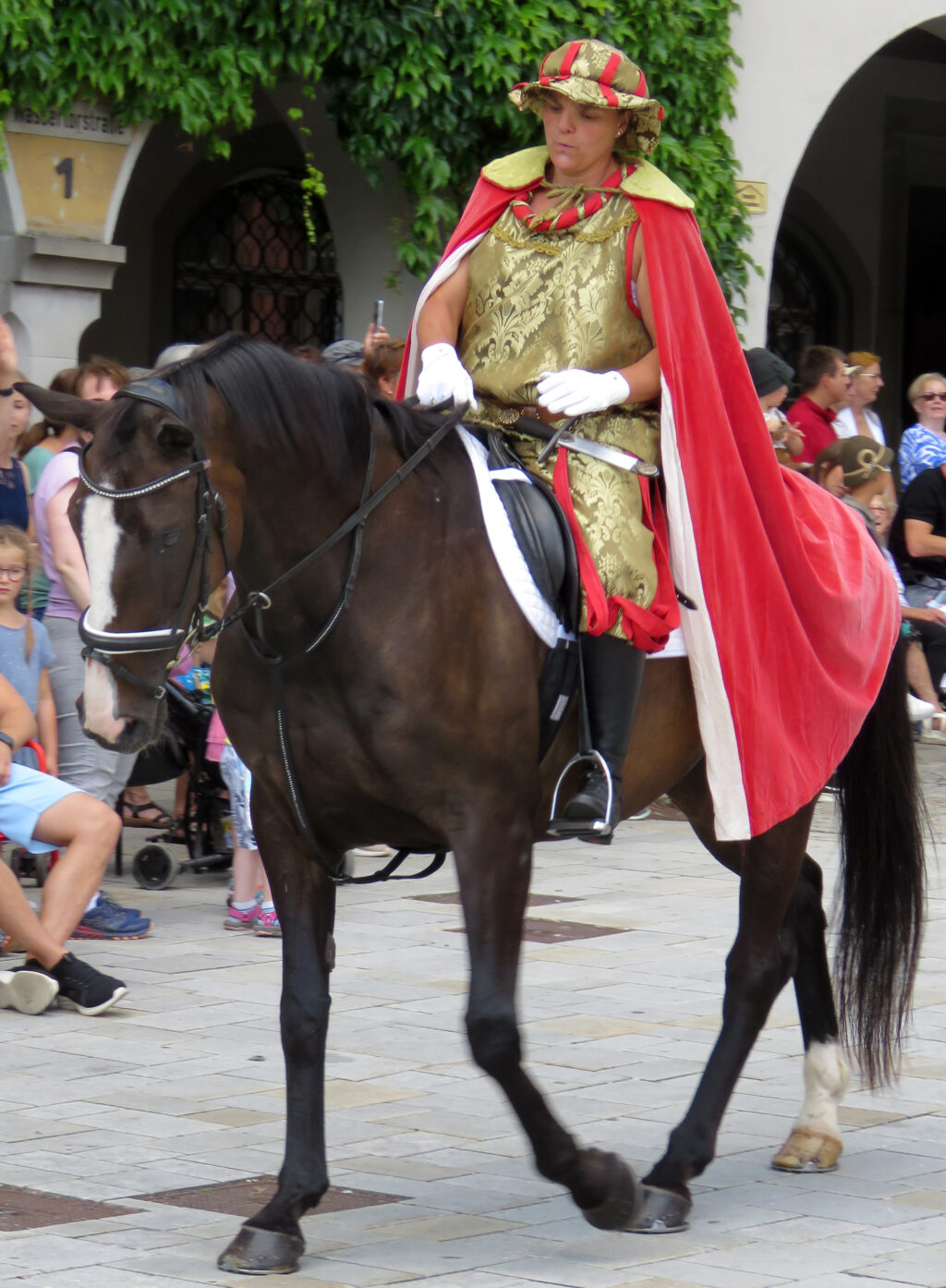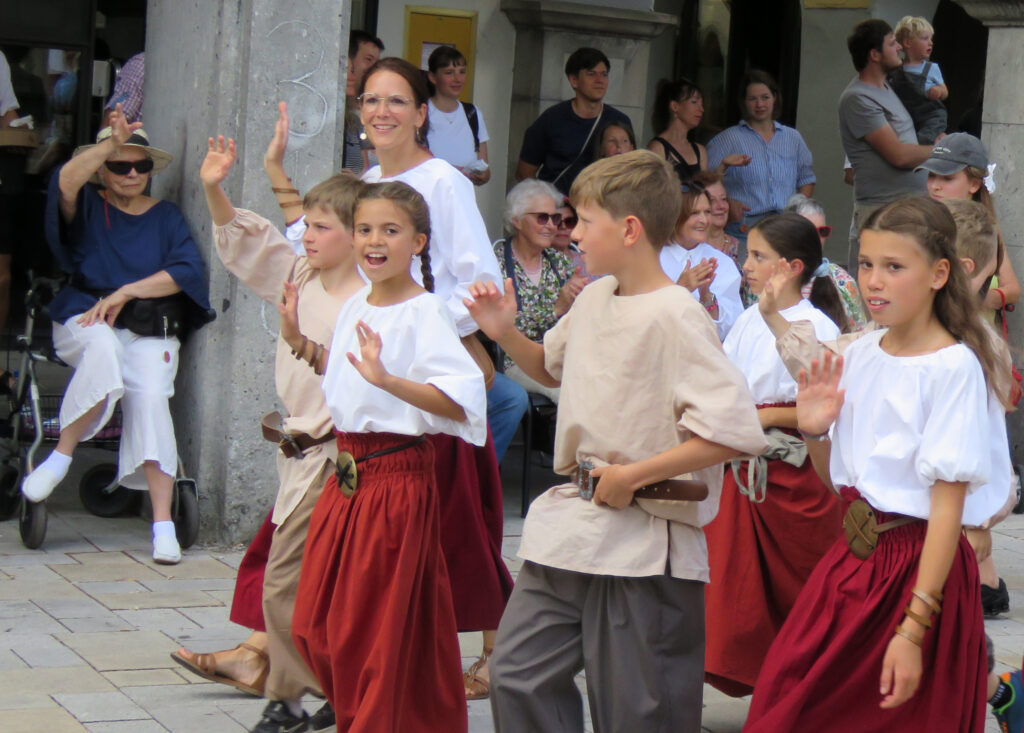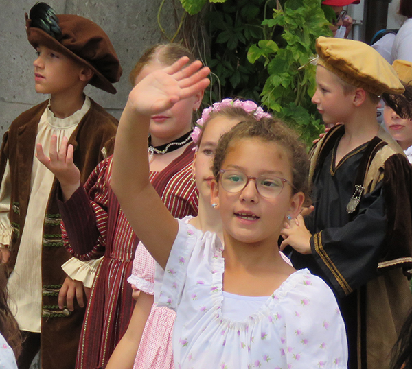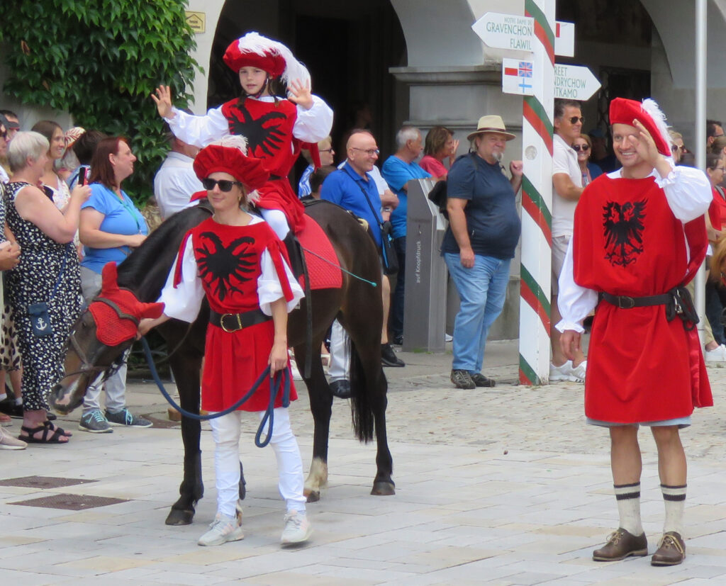 Die Kommentatorin war sehr gut präpariert und erläuterte den Historischen Festzug kompetent und zugewandt.