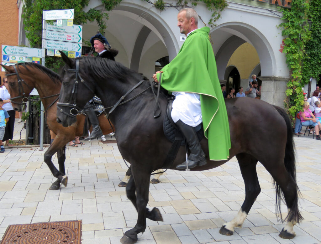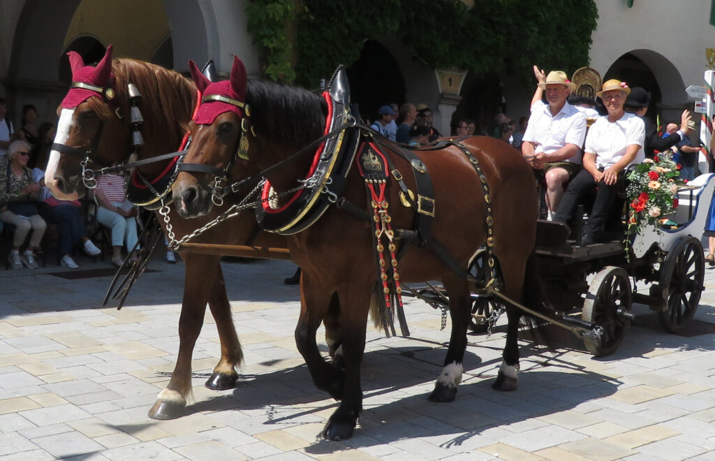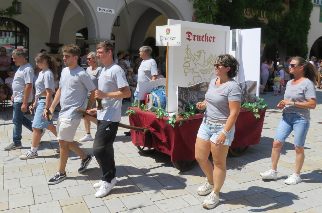 Isny – Seit 2005, seit 20 Jahren also, gibt es die Bildschirmzeitung „Der Wurzacher“. Im Januar 2025 haben wir unsere Ausgabe „Der Isyner“ eröffnet. Es versteht sich, dass die Redaktion der Bildschirmzeitung heuer erstmals beim Historischen Festzug vor Ort war (13.7.). Und der Reporter war mächtig beeindruckt. Es gab noch einen, der den Festzug in voller Länge noch nie gesehen hat: Thomas Herz. 31 Jahre lang dirigierte der Stadtmusikdirektor die Stadtkapelle. Und die bildet traditionell die Nachhut des Historischen Festzuges. Heuer saß Herz erstmals auf der Ehrentribüne. Was er und der Reporter aus Bad Wurzach sahen, war stattlich: Etwa 1900 Kinder und Erwachsene gingen im Zug mit, 22 Festwagen und Kutschen und 26 Handwagen waren zu sehen und 11 Musikkapellen spielten auf. Im Geschirr waren 80 Pferde.