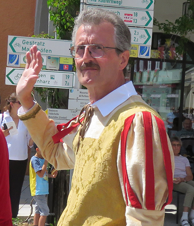 Bürgermeister Rainer Magenreuter (Bild: Kinderfestkommission) dankte ebenfalls mit herzlichen Worten allen Mitwirkenden, Schaffern, Sponsoren, Gästen aus nah und fern. In seiner Begrüßung verbeugte er sich vor dem 88-jährigen Hubert Benk, einem seiner Amtsvorgänger. Auch begrüßte er die Abgeordneten Axel Müller MdB, Petra Krebs MdL und Raimund Haser MdL (der später zum Umzug dazukam).