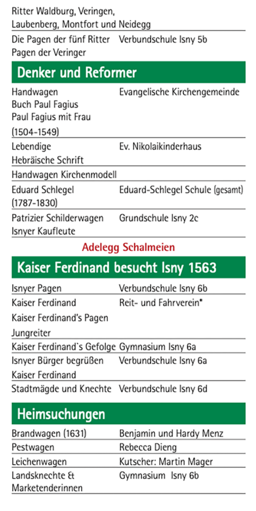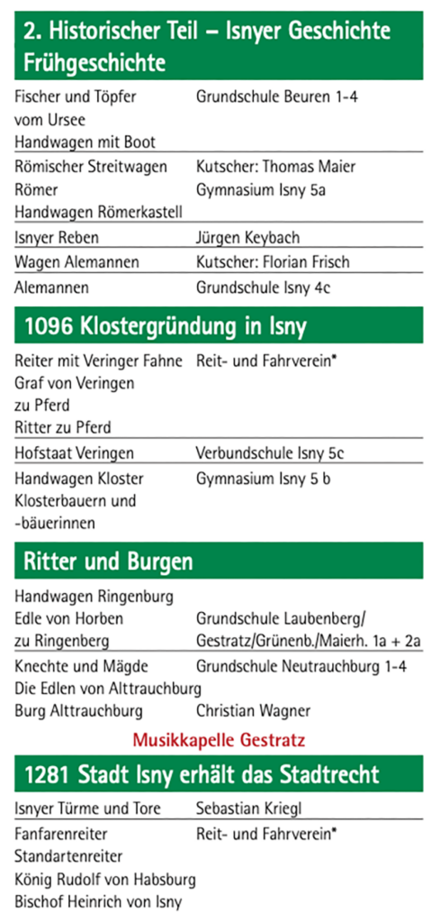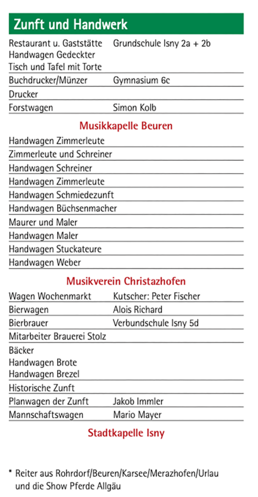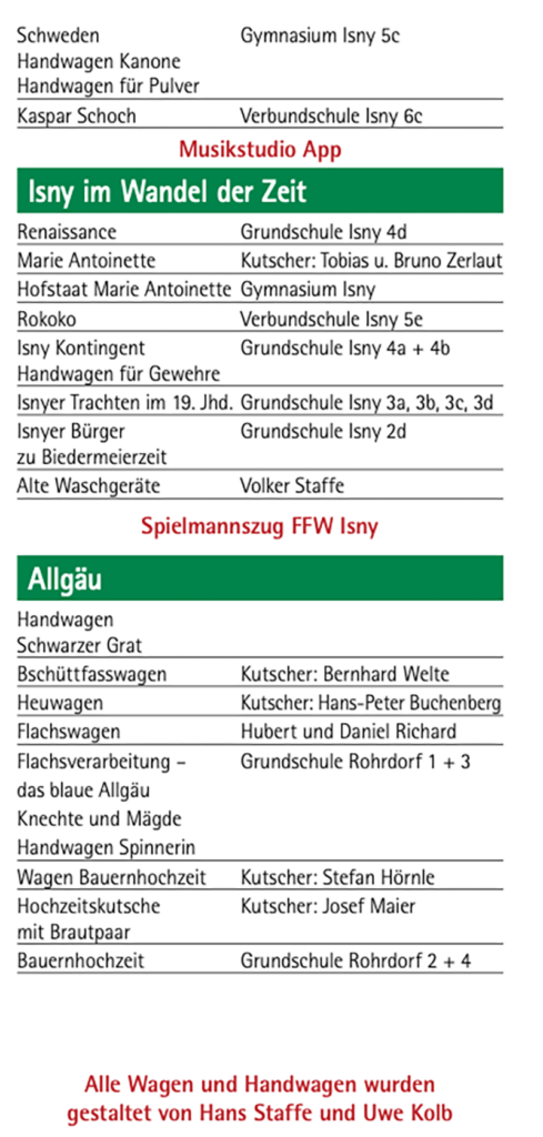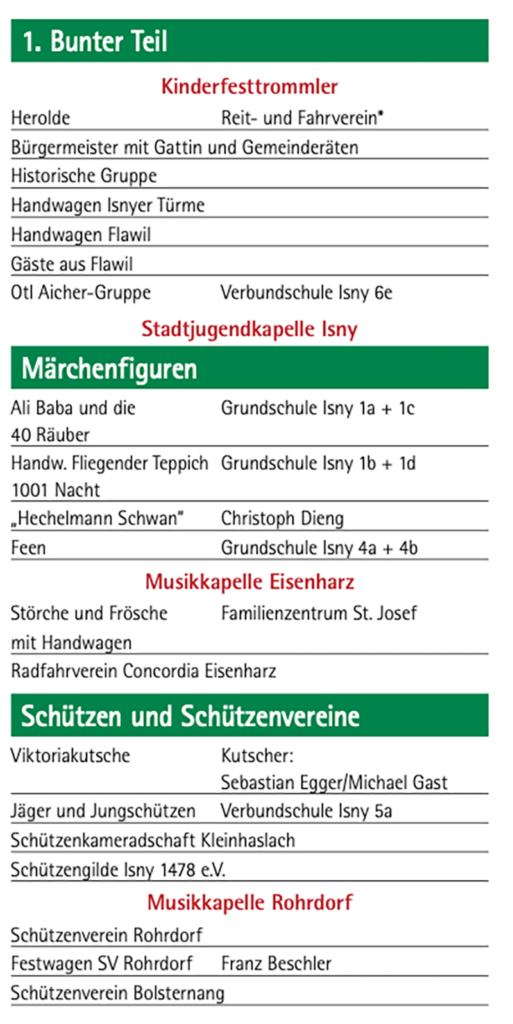 Nachstehend der Umzugsplan, in dem genannt ist, wer die einzelnen Gruppen gestellt hat. Namentlich sind zum Beispiel die Kutscher genannt.
