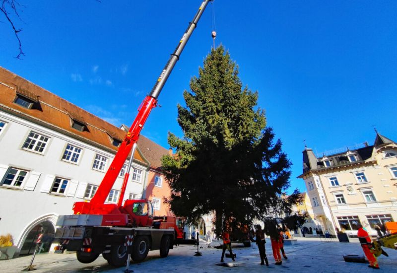 Der Weihnachtsbaum auf dem Marktplatz ist aufgestellt