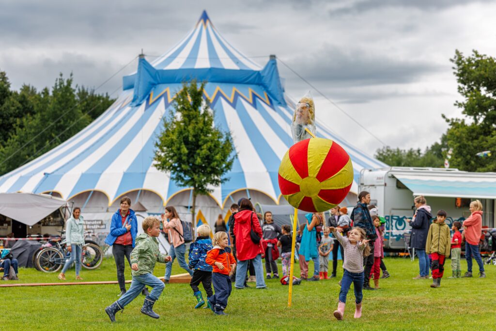 Der beliebte Festival-Sonntag begann mit einem musikalisch außergewöhnlichen Frühschoppen im vollen Gastrozelt: Das Duo Matria mit Tamara Lukasheva und Matthias Schriefl, verschmolz Volksmusik aus Süddeutschland und aus der Ukraine mit Jazz und Improvisation. Dazu ein leckeres Weißwurst-Frühstück aus bestem Bio-Fleisch. Danach begeisterte die Akrobatin Theresa Kuhn auf dem Schlappseil mit Poesie, Kraft und Balancekunst das Publikum am Festivalgelände. Für strahlende Kinderaugen sorgte am Nachmittag Clown Otsch mit seinen fantasievollen Flausenspielen und am Abend holten das belgische Duo OKIDOK mit seiner berühmten absurd-poetischen Clownerie generationsübergreifende Cirque du Soleil-Atmosphäre ins Zirkuszelt.