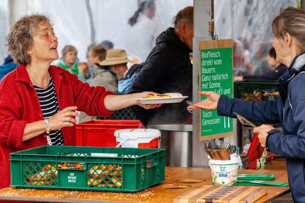 Zum Frühschoppen gab es Weißwürste aus bestem Bio-Fleisch. Foto: Matthias Hagmann