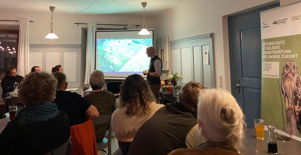 „Wir wollen nicht so Arche Noah spielen – wir brauchen Masse.” Nämlich „Biomasse”. Und von dieser seien im Bereich Insekten in Deutschland schon rund 70 % verschwunden, sagte Matthias Wucherer. Daraus ergäben sich die Fragen: “Was ist Biodiversität?” und „Welche Natur wollen wir eigentlich fördern?” Vor allem „die vielfältigen Offenlande”. Also Wiesen und Weiden. Denn diese bilden „die artenreichsten Lebensräume”.