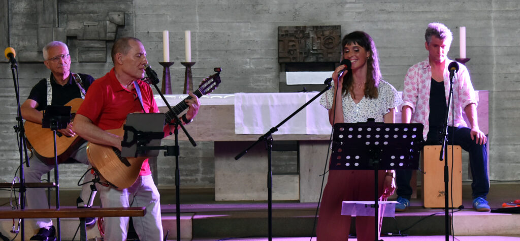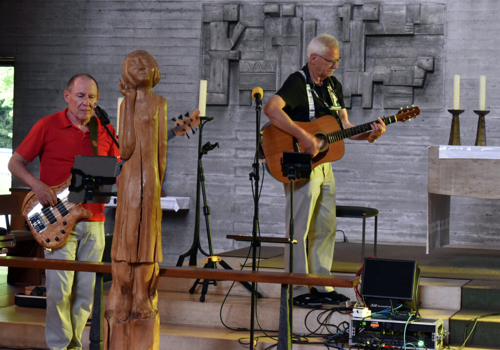 Die Stimmung war super in der fast vollen Kirche, Egbert Dreher an der Akustikgitarre, Klaus Zellmer an der Bassgitarre und Axel Knöll am Cajon begleiteten und sangen mit sichtbarer Freude und Leidenschaft. Ein besonderes Lieblingslied von Klaus und Judith nannte sich „Prayer“, war sehr stimmgewaltig und wurde zum ersten Mal von den beiden aufgeführt. Klaus Zellmer hatte zudem die Konzerttechnik in Verantwortung, die er hervorragend beherrscht.