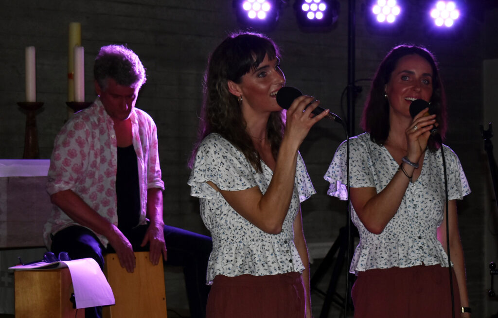 Judith (links) und Ruth Angele (“Soulsisters”) und Axel Knöll am Cajon.