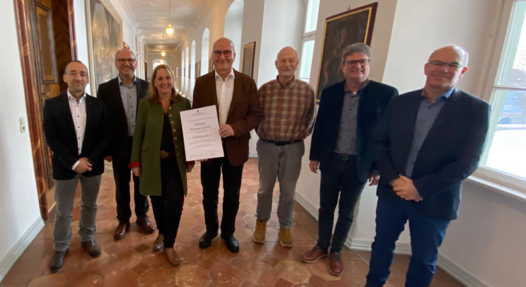 „Der Teilnehmergemeinschaft der Flurbereinigung Kißlegg-Rempersthofen wird zu den zuwendungsfähigen Ausführungskosten ein Zuschuss in Höhe von 505.862,40 € bewilligt. Insgesamt wird das Flurbereinigungsverfahren mit 515.463,40 E gefördert. Die Rahmenbedingungen sind im Scheiben vom 18.12.2025 geregelt. Stuttgart, den 18.12.2025 Dieter Ziesel Präsident.“ – So steht es auf der Urkunde des Baden-Württembergischen Landesamtes für Geoinformation und Landentwicklung, die Bürgermeister Krattenmacher an jenem Freitagnachmittag von Ministerialdirektorin Kling übernommen hat. Die Ministerialdirektorin lobt, was in Kißlegg für die Flurbereinigung Repertshofen während der vergangenen zehn Jahre geleistet wurde: „Das ist vorbildlich.“