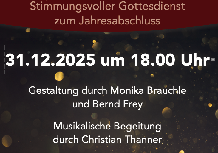 Den Jahresabschluss in Rötsee am 31. Dezember gestalten Monika Brauchle und Bernd Frey (18.00 Uhr). Im Anschluss gibt es Punsch und Weihnachtsplätzchen.