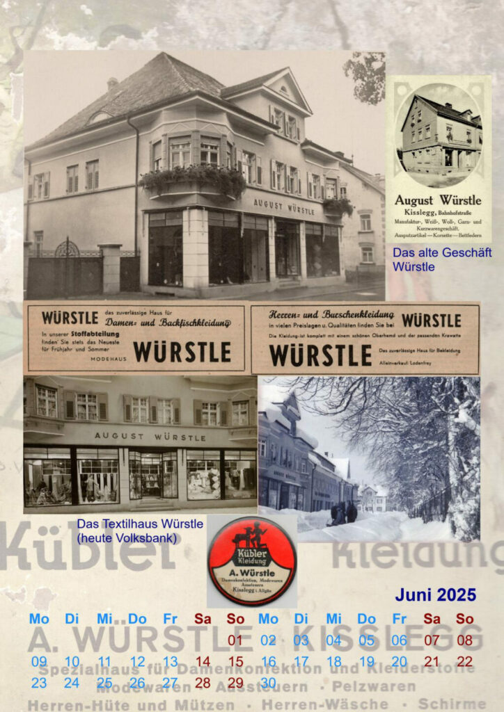 Kißlegg – Das Juni-Kalenderblatt von Bernd Mauchs Alt-Kißlegg-Kalender ist dem ehemaligen Mode- und Textilhaus Würstle gewidmet. Mauch schreibt: