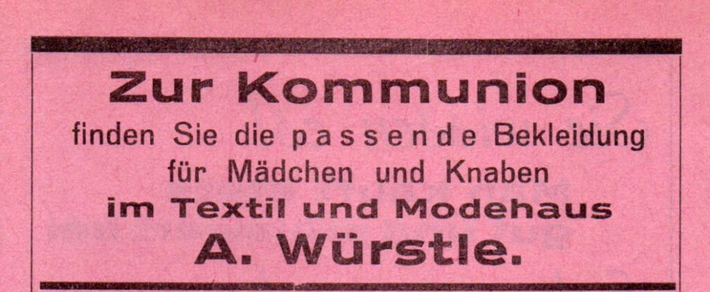 Angebote zur Kommunion. Aus einem “Marktanzeiger” von 1954.