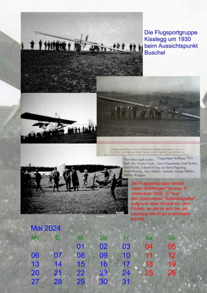Kißlegg – Das Mai-Blatt seines Kalenders zu Alt-Kißlegg hat Bernd Mauch der ehemaligen Segelfluggruppe Kißlegg gewidmet, die schon seit 1930 aktiv war. Sie war damals schon dem württembergischen Luftfahrverband angeschlossen. Bernd Mauch schreibt: