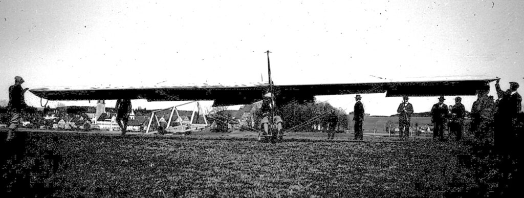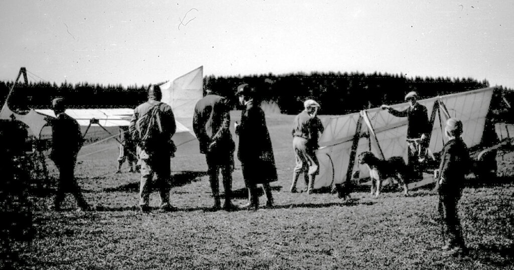 Die Fluggruppe kaufte sich einen Bausatz eines Gleitfliegers und baute ihn flugfähig zusammen. Es handelte sich um einen Gleitflieger, der 1929 von Edmund Schneider entwickelt wurde auf Basis eines Schulgleiters nach Gottlob Espenlaub. Die Konstruktion bestand aus einem einfachen, stabilen, unverkleideten Gitterrumpf und einer Rechtecktragfläche, die bei geringen Materialkosten leicht nachgebaut werden konnten. Der Gleitflieger trug den Namen Grunau 9. Er hatte eine stolze Spannweite von 10.75 Metern und eine Länge von 4,90 Meter. Er konnte nur eine Person tragen und hatte ein Leergewicht von 95 kg. So richtig schwer durfte der Pilot aber nicht sein, da das maximale Startgewicht 190 kg betrug. Gestartet wurde damals vom höchsten Punkt in Kißlegg, dem Aussichtspunkt Buschel bei Immenried (739 Meter hoch gelegen – Kißlegg liegt auf 651 Meter).