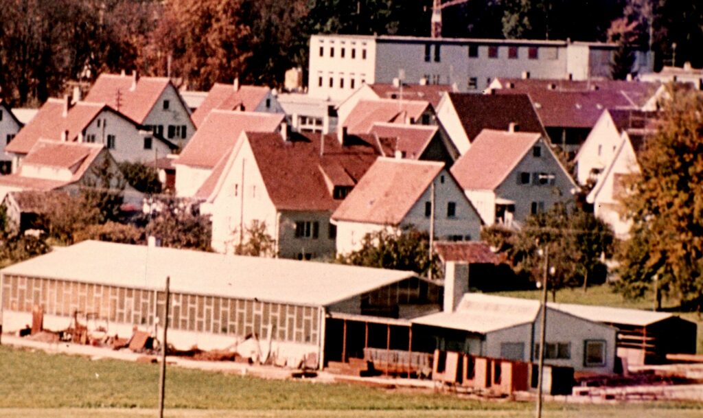 Das Ladengeschäft nach dem Umbau (Anfang der 1960er-Jahre). Es wurde genutzt als Bankfiliale der LASPA (Württembergische Landessparkasse), geführt durch Herrn Kesenheimer, und später fand das “Brilleneck” von Karl-Heinz Schläfer dort lange Jahre seine Heimat. Heute ist ein Versicherungsbüro drin.