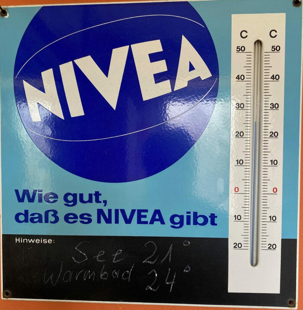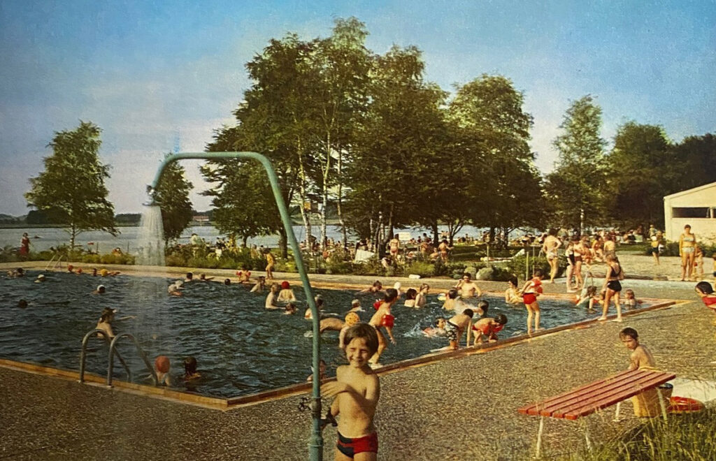 Die hölzernen Badehütten wichen modernen Umkleidekabinen mit Duschen und WCs, der Bademeister bekam einen schönen Kiosk, aus dem heraus er Eintritt verlangte und Eis und Süßigkeiten verkaufte. Außen am Kiosk war eine Emailtafel von Nivea angebracht, auf der die Wassertemperatur des Obersees (und später auch des Warmbeckens) angeschrieben war.