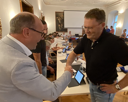 Kißlegg (rei) – 23 Mitglieder zählt der neugewählte Gemeinderat von Kißlegg. Gestern Abend (31.7.) hat er sich konstituiert. Bürgermeister Dieter Krattenmacher verpflichtete die Gemeinderäte auf ihr Ehrenamt. Nach der gemeinsam gesprochenen Verpflichtungsformel gab er jedem seiner Ratsmitglieder die Hand.