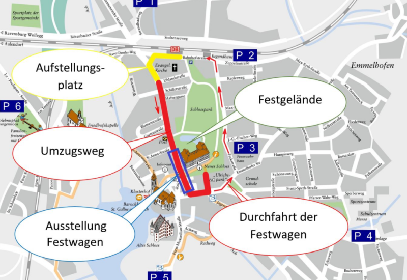 Den Auftakt der Festtage bildet der große, farbenfrohe Umzug am Donnerstag, 30. Mai, um 14.30 Uhr. Hier präsentieren sich die Kißlegger Kindergärten und Schulen sowie die umliegenden Ortschaften mit ihren liebevoll geschmückten Festwagen. Befreundete Fanfarenzüge aus der näheren Umgebung unterhalten die Zuschauer mit traditionellen Fanfaren-Märschen.