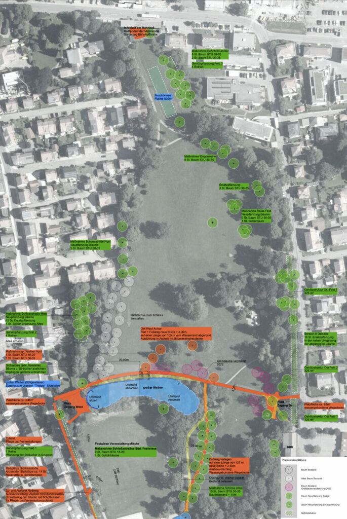 Nachtstehend ein Lageplan zum gesamten Areal, uns von der Gemeinde zur Veröffentlichung zur Verfügung gestellt (gefertigt von Kappler Landschaftsarchitektur Wangen), sowie von uns angefertigte Ausschnitte. Die komplette Sitzungsvorlage finden Sie unter Download.