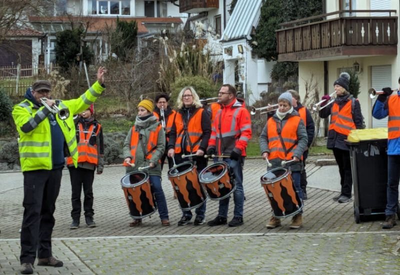 Der Fanfarenzug Kißlegg beim diesjährigen Silvesterblasen; unsere Aufnahme stammt vom 30. Dezember.