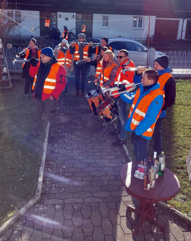 Kißlegg (dbsz) – Wie es schöner Brauch ist, erfreute der Fanfarenzug Kißlegg die Menschen auch heuer mit seinem Silvesterblasen. Das Aufspielen an zahlreichen Orten in und um Kißlegg ging über fünf Tagen; begonnen hatte man am Mittwoch, 27. Dezember. An Silvester spielte der Fanfarenzug ab 12.00 Uhr im “Flecka”.