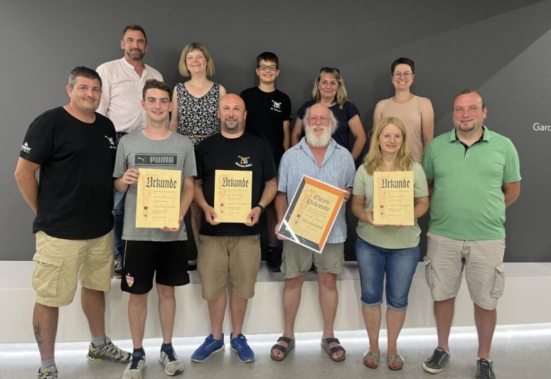 Besonderes erfreulich war die Ernennung zum Ehrenmitglied von Herrn Carlo Weiland für 50 Jahre Mitgliedschaft sowie die Ehrungen von Sandra Müller (10.Jahre), Florian Gernert (10 Jahre), Andreas Biechteler (5 Jahre) und die Neuaufnahmen von Tanja Schroll, Felix Puszti und Moritz Nohr.