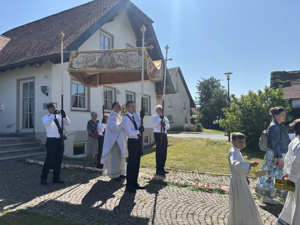 Der festliche Gottesdienst wurde von Pfarrer Gunnar Sohl zelebriert. Anschließend zog die Prozession bei schönem Wetter und großer Beteiligung durch die Ortschaft. Musikalisch begleitet wurde der Zug von der Musikkapelle Immenried. Neben zahlreichen Gläubigen nahmen auch die Fahnenabordnungen der Immenrieder Vereine teil: Der Musikverein, die Freiwillige Feuerwehr, die Krieger- und Soldatenkameradschaft, der Schützenverein sowie die Blutreitergruppe verliehen der Prozession einen feierlichen und ehrwürdigen Rahmen.