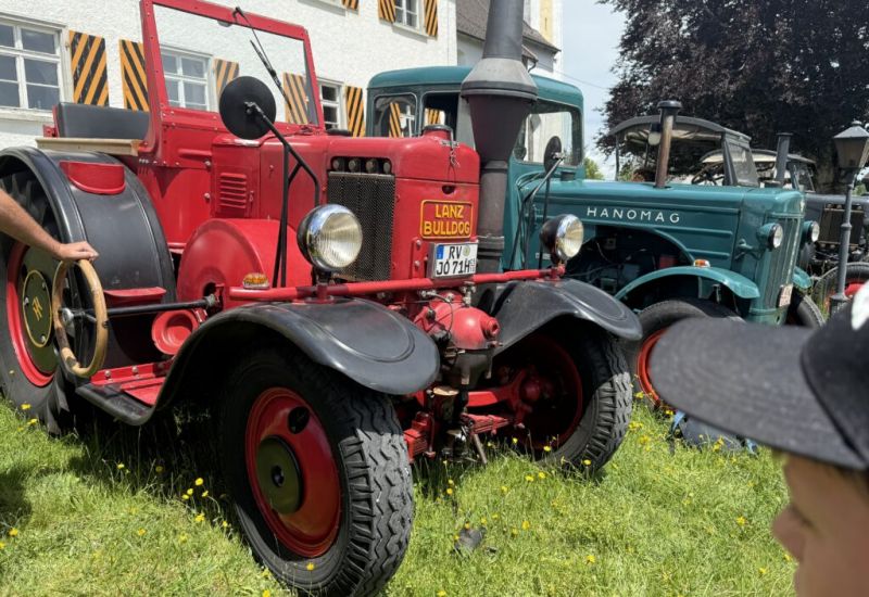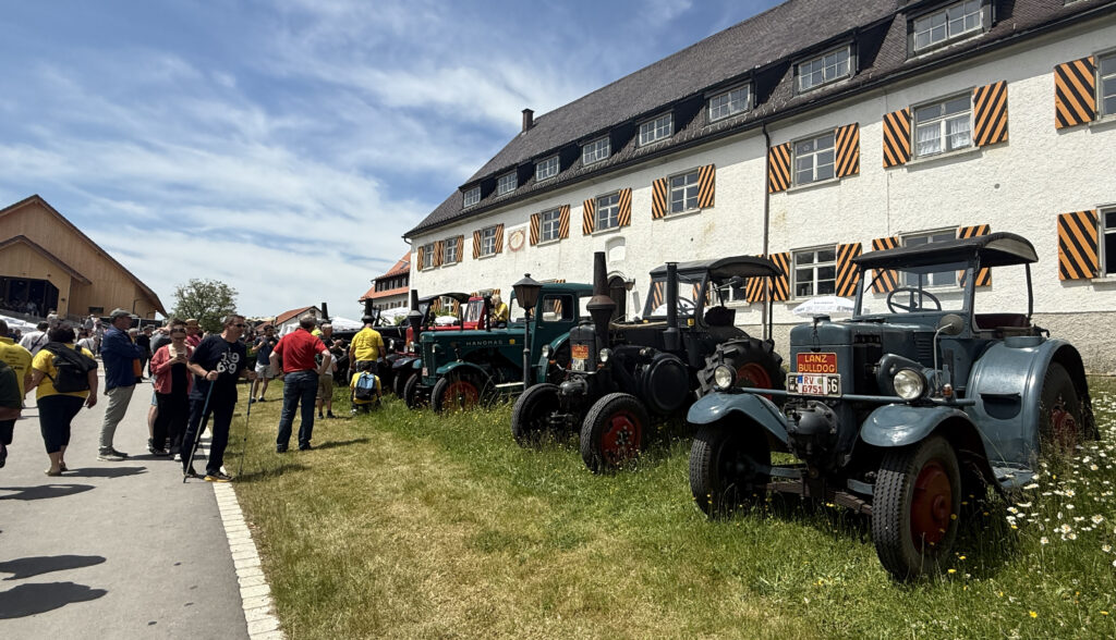 Neben den Ausstellungen war die Oldtimerausstellung ein weiteres Highlight des Heimatflohmarkts am Sonntag. Zahlreiche Oldtimer-Traktoren waren auf dem Gelände ausgestellt. Mit einem Dutzend alter Bulldog-Traktoren kamen die Bulldog- und Schlepperfreunde Kißlegg zum Heimatflohmarkt. Der Verein, der sich der Erhaltung und Instandsetzung historischer Traktoren und Landmaschinen widmet, ist seit langer Zeit in Kißlegg ansässig; er hat sich auf sogenannte Bulldog-Traktoren spezialisiert. Das sind Traktoren, die um 1920 gebaut wurden und vor allem aufgrund ihrer Robustheit gerade in der Landwirtschaft sehr beliebt waren. Berühmt war der Bulldog für seinen robusten und einfach aufgebauten Einzylinder-Glühkopfmotor. Dieser Motor sah dem Bulldog, dem er seinen Namen verdankt, sehr ähnlich.